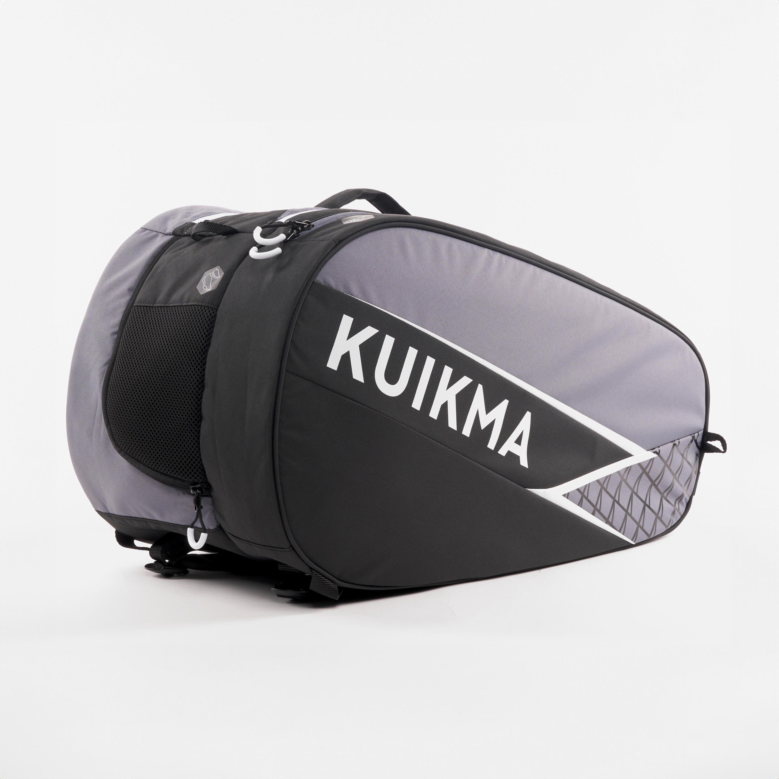 La borsa da tennis Kuikma PL 900 è ideale per i giocatori di padel ambiziosi che desiderano trasportare comodamente tutta la loro attrezzatura. Con un volume di 35 litri, questa borsa offre spazio sufficiente e dispone di due ampi scomparti, tra cui uno scomparto termico in grado di contenere fino a due racchette. Uno scomparto separato per le scarpe garantisce l'ordine. Grazie agli spallacci regolabili, la borsa è comoda da trasportare. La borsa non è impermeabile e deve essere lavata a mano a una temperatura massima di 40°C e asciugata all'aria aperta. «35 l Volumen mit 2 grossen Fächern (ein Thermofach für 2 Schläger und das andere für Kleidung und Zubehör) und 1 separates Fach für Schuhe. Masse: 57 × 32 × 28 cm.»