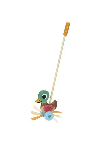 Le drôle de canard se dandine avec ses pieds lorsqu'on le pousse. Un superbe jouet en bois robuste et dans le joli design de l'illustratrice Ingela P. Arrhenius. Pour les jeunes enfants à partir de 2 ans. Taille : 16x68x8 cm