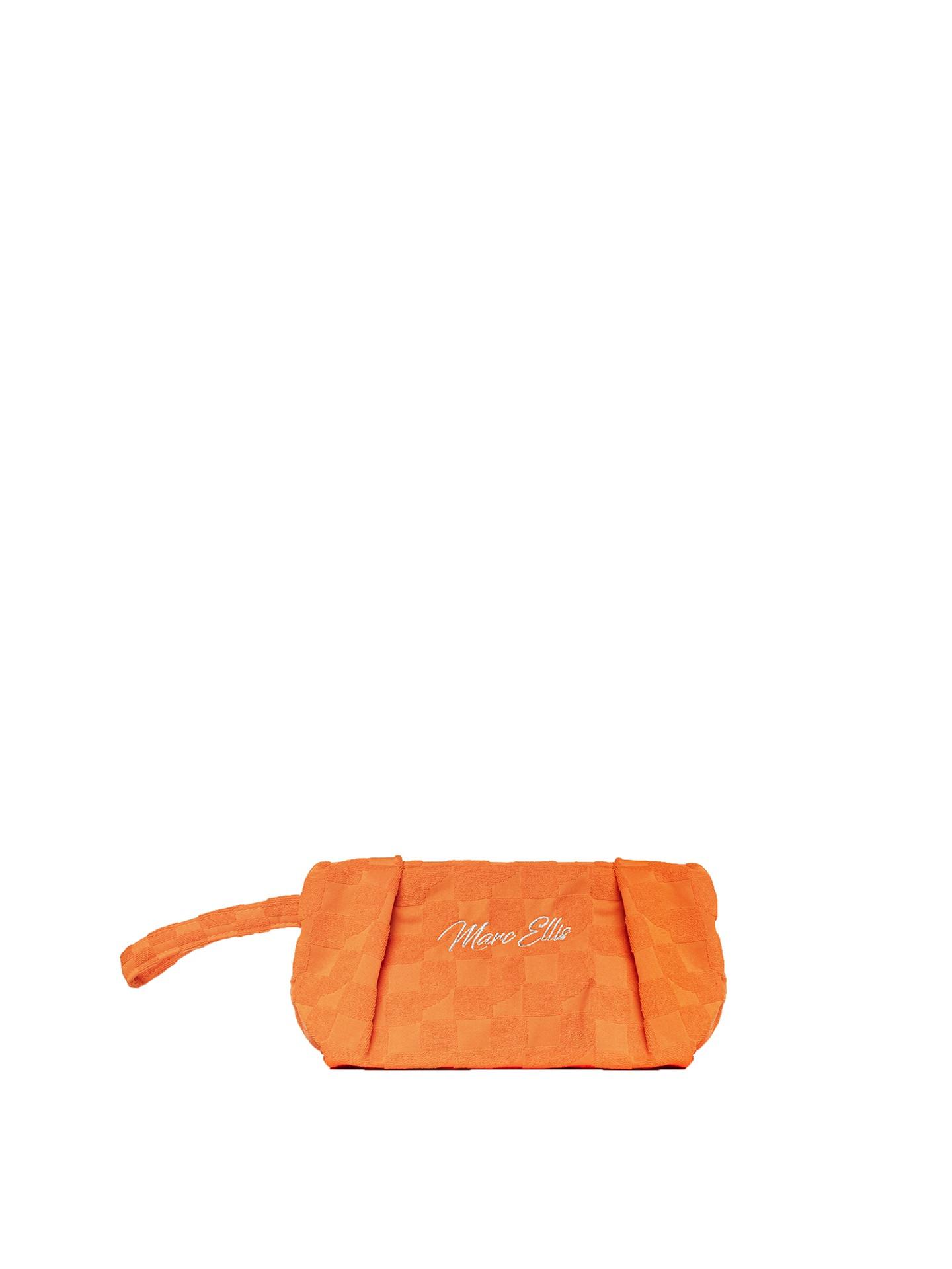 La pochette Solea è un accessorio elegante, perfetto per trasportare l'essenziale. Presenta un design testurizzato e un logo del marchio ben visibile sul davanti.