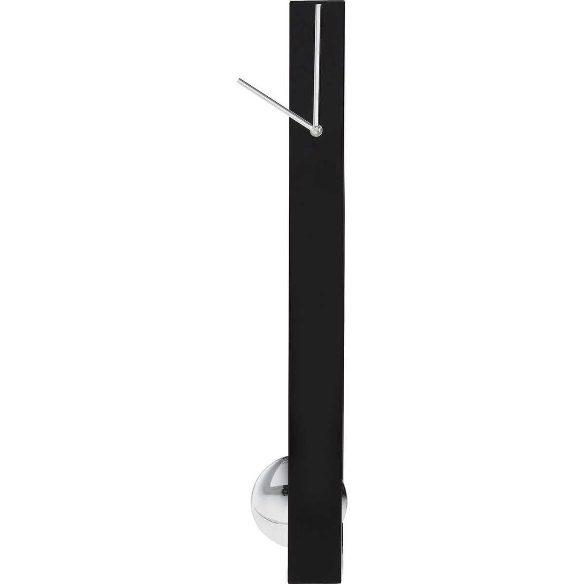 Orologio da parete moderno con pendolo L'orologio da parete Pendulum dimostra in modo impressionante che un orologio non deve sempre essere rotondo: l'elegante cassa nera si erge come un monumento. Mentre le lancette si trovano all'estremità superiore, un pendolo rotondo in un look cromato ricco e lucido oscilla nella parte inferiore. Un vero e proprio colpo d'occhio! Un design moderno ed elegante abbinato a un certo tocco purista. Un'alleanza vincente a tutto tondo. Perfetto per chi ama il design e le linee rette!Informazioni sul prodotto Telaio: alloggiamento in alluminio laccato, senza batterie:, quadrante: alluminio lucidato, pendolo: acrilonitrile butadiene stirene, lancette: alluminio lucidato
