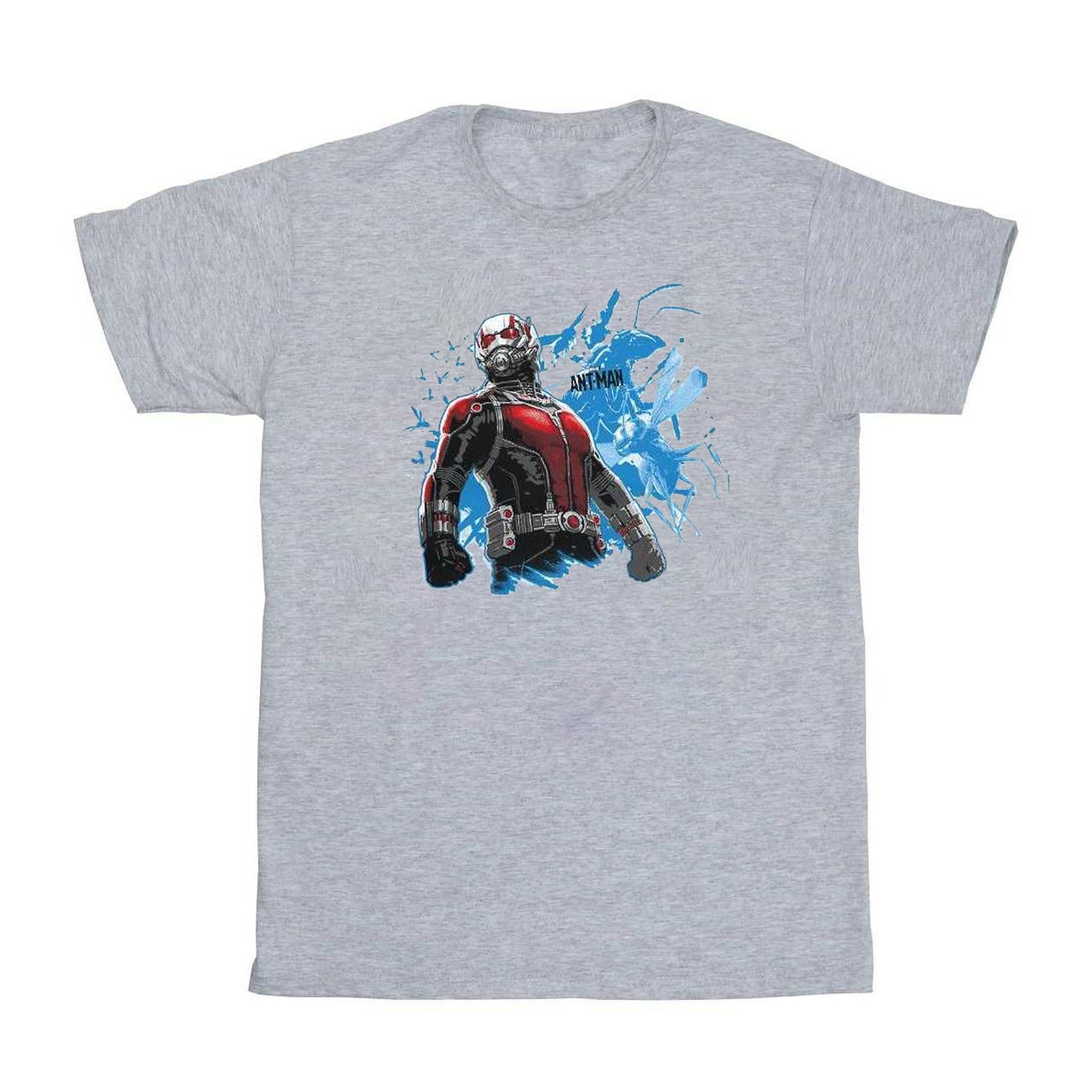 Questa T-shirt presenta una grafica dinamica di Ant-Man, rendendola un'ottima aggiunta per i fan del supereroe. Il design cattura Ant-Man in una posa pronta, su uno sfondo blu vibrante con elementi astratti.