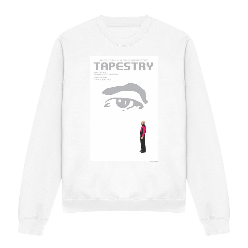 Questa felpa presenta una stampa grafica ispirata a "Star Trek: The Next Generation" Stagione 6, Episodio 15, intitolato "Tapestry". Il design mostra elementi chiave dell'episodio, rendendola un capo distintivo per i fan.
