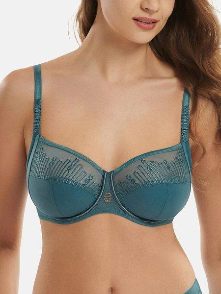 Questo elegante reggiseno non preformato con ferretto della collezione Ivonne combina una maglia morbida e confortevole con un attraente ricamo trasparente nella scollatura per un look femminile e moderno. La parte inferiore e laterale delle coppe è foderata con tulle elastico per una vestibilità ottimale. Presenta un comodo materiale elastico sotto il seno e un dettaglio metallico decorativo tra le coppe.
