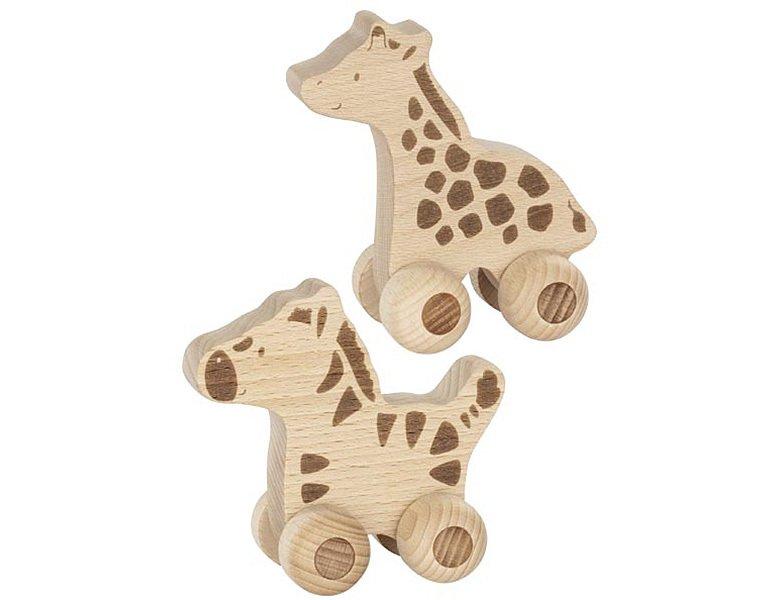 Die Schiebetiere aus der Nature-Linie sind aus hochwertigem Holz gefertigt und bieten ein natürliches Spielerlebnis. Sie kommen ohne Farben aus, ihre ansprechenden Brauntöne entstehen durch eine spezielle thermische Behandlung. Die stabilen, runden Räder sorgen für ein leichtes und sicheres Schieben. Die zwei Figuren haben eine Grösse von 10,5 x 5,7 x 11,5 cm und sind ideal für kleine Hände.