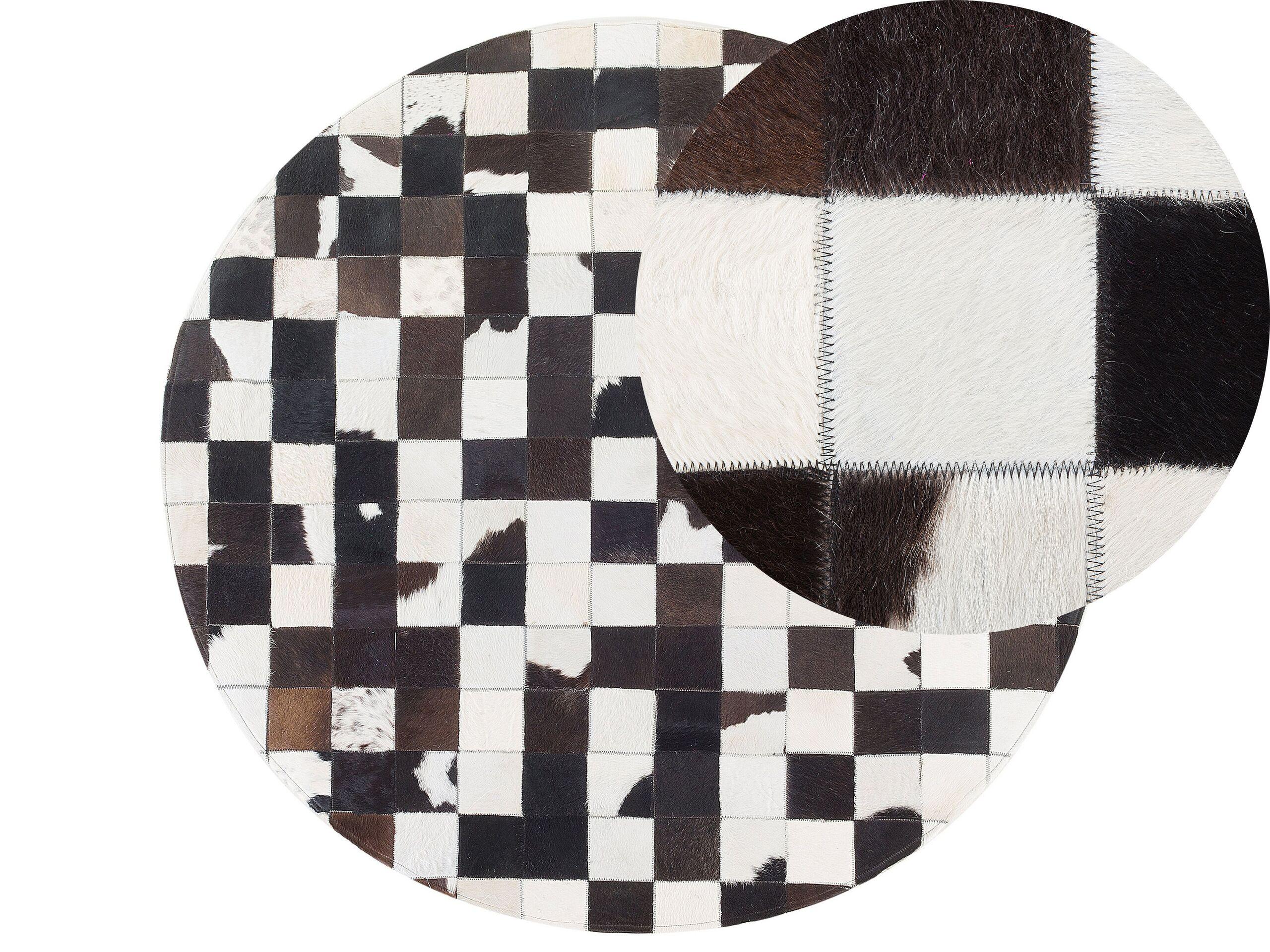 Tappeto tondo in colorazione bianconera. Apri le porte al design con questo tappeto in stile classico. Realizzato in pelle bovina di alta qualità, è composto da diversi ritagli cuciti insieme per un look davvero originale.