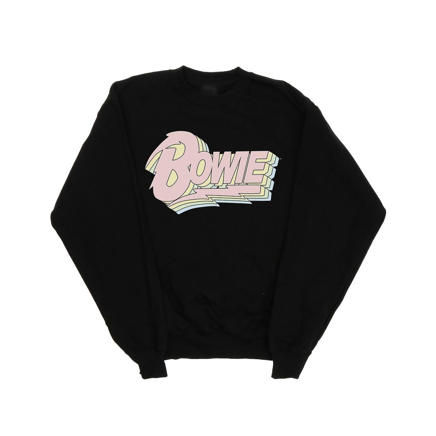 Questa felpa presenta un classico girocollo e maniche lunghe, offrendo una vestibilità comoda e rilassata. La parte anteriore è adornata da un distintivo logo "Bowie", presentato in un design a strati di ispirazione retrò con tonalità pastello, che aggiunge un tocco di stile iconico.