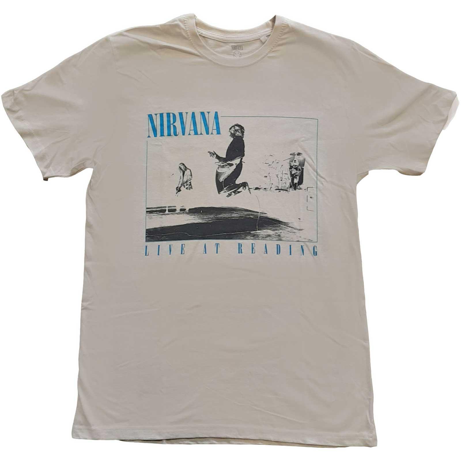 Questa T-shirt presenta un classico girocollo e maniche corte, offrendo una vestibilità comoda e versatile. La parte anteriore è adornata con una stampa grafica di 'Nirvana Live At Reading', che cattura un momento iconico della storia della musica.