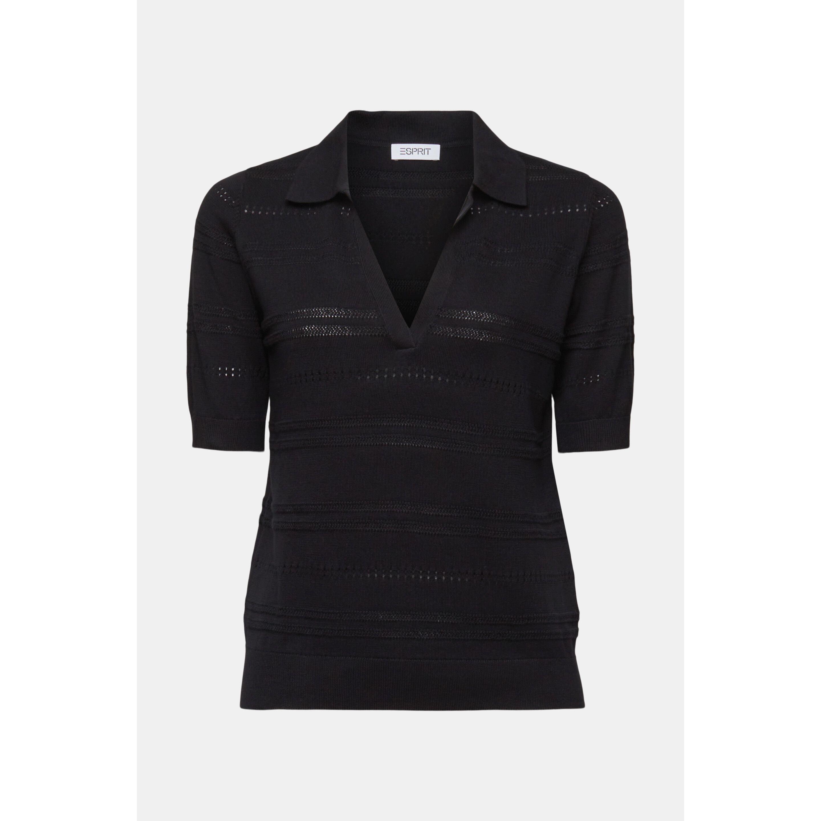 Questa polo presenta un colletto classico e uno scollo a V, offrendo un look intramontabile ma moderno. Le maniche corte e i dettagli in maglia traforata aggiungono un tocco di raffinatezza, rendendola un capo versatile per varie occasioni.