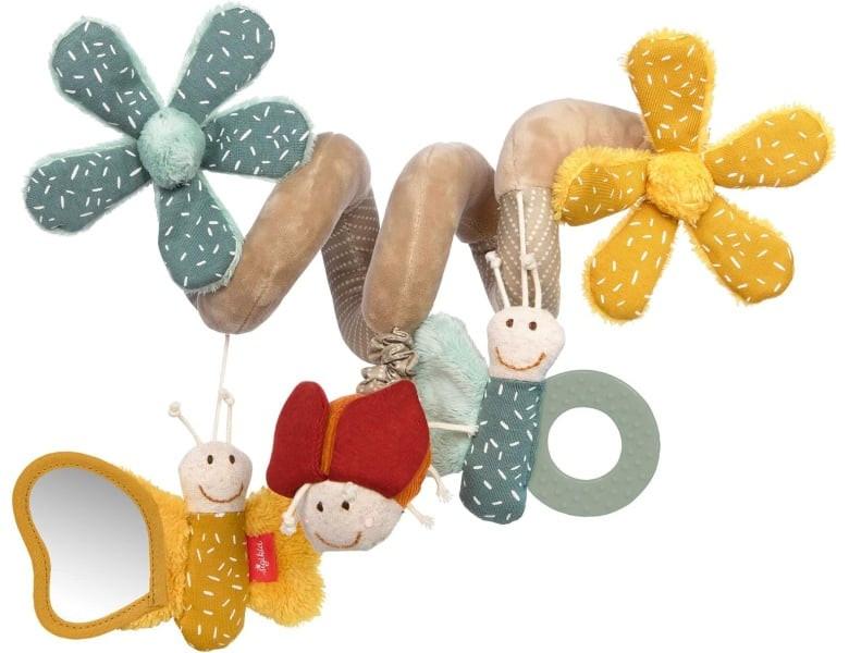 Dieses farbenfrohe Babyaktivspielzeug in Gelb, Taube und Petrol ist perfekt zum Aufhängen. Die multifunktionale Spirale enthält ein Spiegelchen, verschiedene Stoffblüten und eine lustige Schnecke, die zur Spielanregung dient. Hergestellt aus hochwertigen und sicheren Materialien, bietet es stundenlangen Spielspass.