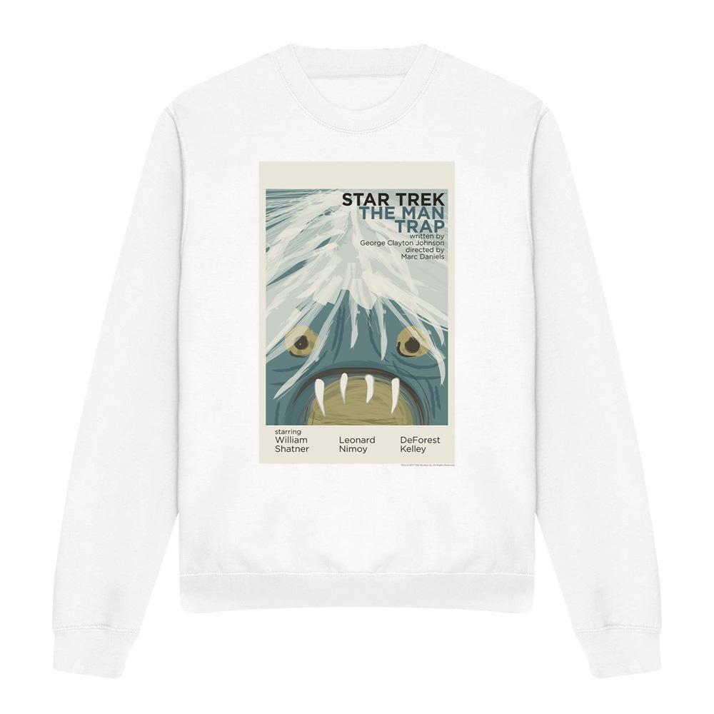 Questa felpa presenta una stampa grafica unica ispirata a "The Man Trap", il primo episodio di Star Trek: The Original Series. Il design cattura l'essenza del classico show di fantascienza, rendendolo un capo distintivo per i fan.