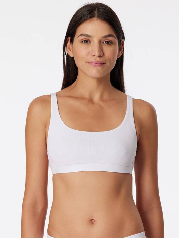 Questo bustier è realizzato in doppia costina sostenibile e di alta qualità, composta da modal Tencel e cotone biologico. Offre una sensazione piacevolmente morbida sulla pelle e presenta una fascia sottoseno delicatamente sostenuta.