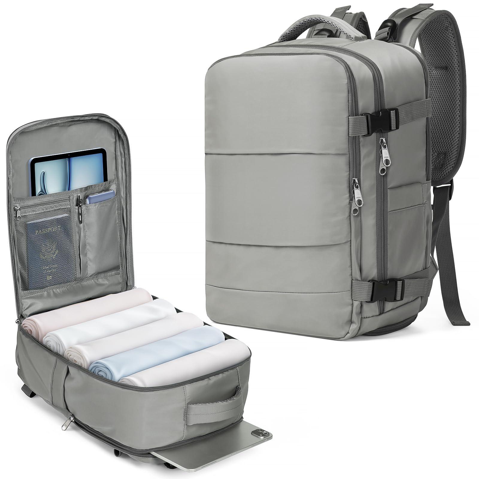 Lo zaino è dimensionato per essere riposto nei vani portabagagli superiori e sotto i sedili dell'aereo, rendendolo un'opzione ideale per il bagaglio a mano. Include anche una tasca antifurto sul retro per una maggiore sicurezza.