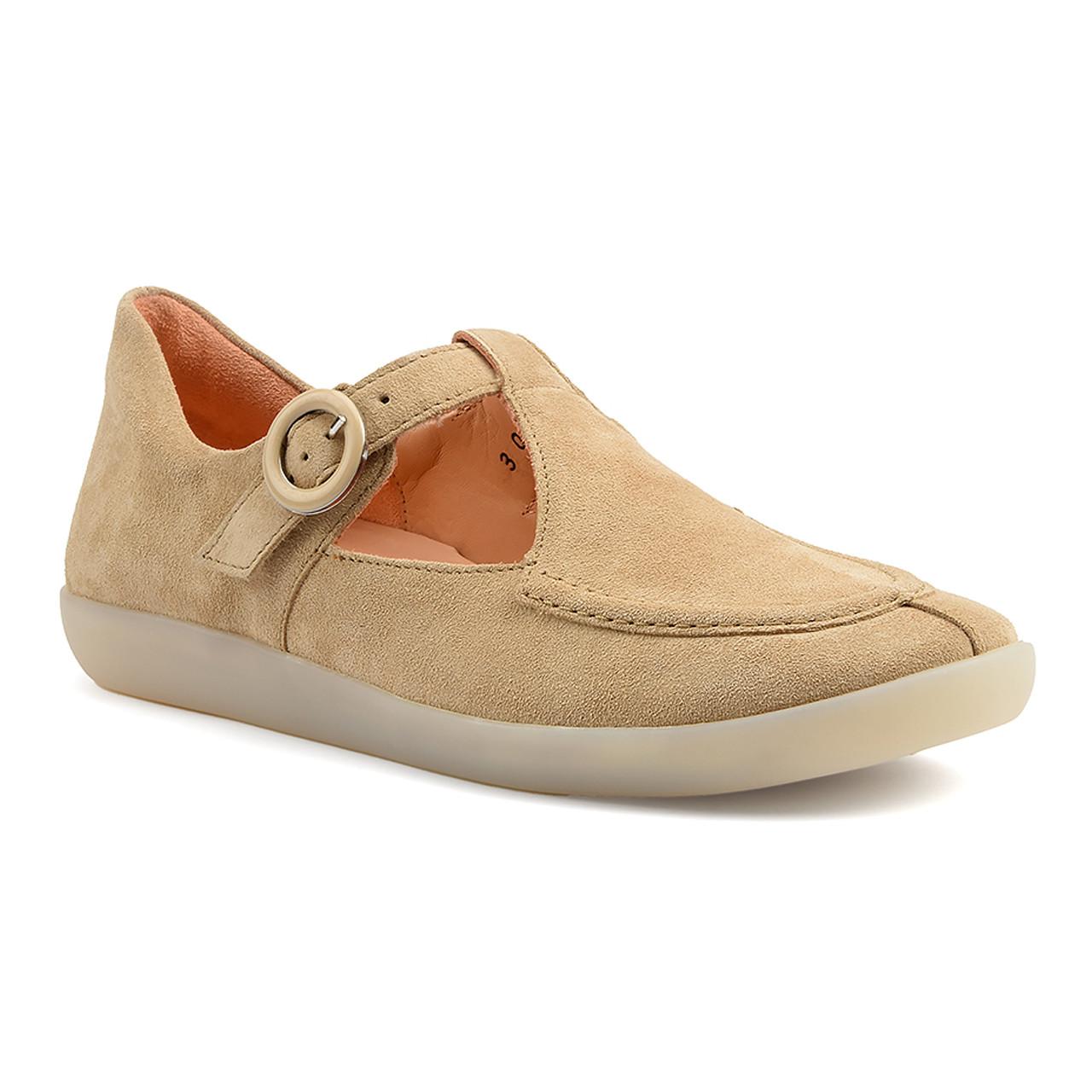 Le scarpe Nature 1116 Mary Jane sono un paio di ballerine casual e chic, perfette per l'uso quotidiano, il lavoro o le uscite di piacere. Queste ballerine in pelle vellutata senza cromo presentano uno stile elegante e un tocco di raffinatezza. La pelle vellutata senza cromo della scarpa è foderata con pelle vegetale, offrendo comfort e leggerezza eccezionali. La soletta in pelle vegetale è rimovibile, facilitando la manutenzione e la sostituzione. La suola esterna è in gomma, offrendo una buona protezione e versatilità. Il colore beige della scarpa è ideale per abbinarsi a una varietà di outfit. La scarpa ha una fibbia regolabile vicino alla caviglia, che consente una buona adattabilità al piede. La suola è leggermente rialzata nella parte posteriore, fornendo una buona stabilità. L'interno della scarpa è foderato con pelle vegetale rosata, offrendo un bel contrasto con il colore beige della scarpa.