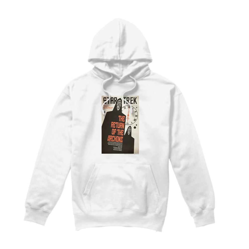 Questa felpa con cappuccio presenta una stampa grafica ispirata a "The Return of the Archons", episodio 21 di Star Trek: The Original Series. Combina comfort con un design classico, rendendola un'aggiunta versatile a qualsiasi guardaroba.