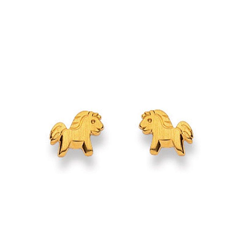 MUAU Schmuck Ohrstecker Pferd Gelbgold 750, 7mm