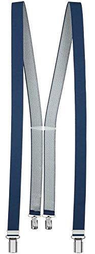 * 4 robuste clip. Finalmente, niente più pantaloni che scivolano! I clip hanno inserti in plastica integrati per evitare che i pantaloni si danneggino * Comfort ideale per lavoro e tempo libero. Versatile, abbinabile ai pantaloni da completo, pantaloni da lavoro, pantaloni da moto, pantaloni da sci o costume. * Chiusura: Clip * 85% poliestere, 15% elastan * La larghezza dell'elastico è di 25 mm * Perfetto per l'Oktoberfest, il Carnevale o la prossima festa. Con le nostre bretelle sarete sempre al centro dell'attenzione