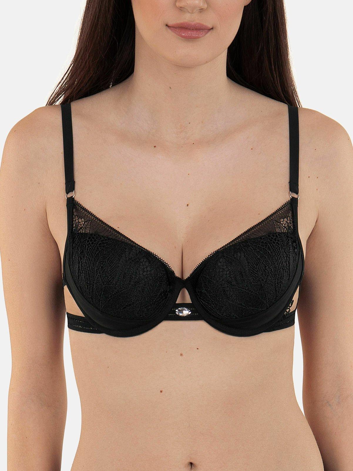 Reggiseno preformato della collezione Soul di Lisca. Un reggiseno femminile e seducente per un décolleté perfetto. Le sue coppe in schiuma con ferretto offrono un sostegno ottimale per i seni più grandi. I pannelli laterali in tulle esaltano la delicatezza del pizzo delle coppe. Un cristallo Swarovski sulla scollatura aggiunge un tocco di glamour. La schiena del reggiseno è foderata per un sostegno ottimale. Le spalline senza cuciture sono regolabili e più larghe nelle taglie più grandi. Modelli in pizzo con tulle color nudo e cristalli Swarovki, colori energici e potenti che esaltano il carattere: questa è la lingerie che si adatta alle donne di carattere. La combinazione perfetta di stili di taglio moderni e trasparenza, l'equilibrio perfetto tra innocenza e audacia.