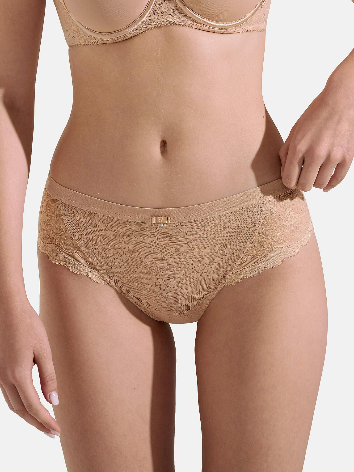 L'intreccio di sezioni di pizzo trasparente e opaco assicura una sottile femminilità. Uno stile leggero e femminile che offre il comfort di tutti i giorni, è realizzato in attraente pizzo elastico, allacciato con morbido tessuto a maglia. I dettagli glitterati conferiscono alla lingerie un tocco di eleganza. Questa lingerie è la scelta perfetta per le amanti della lingerie senza tempo con un tocco romantico, lingerie femminile ed elegante da indossare tutti i giorni.