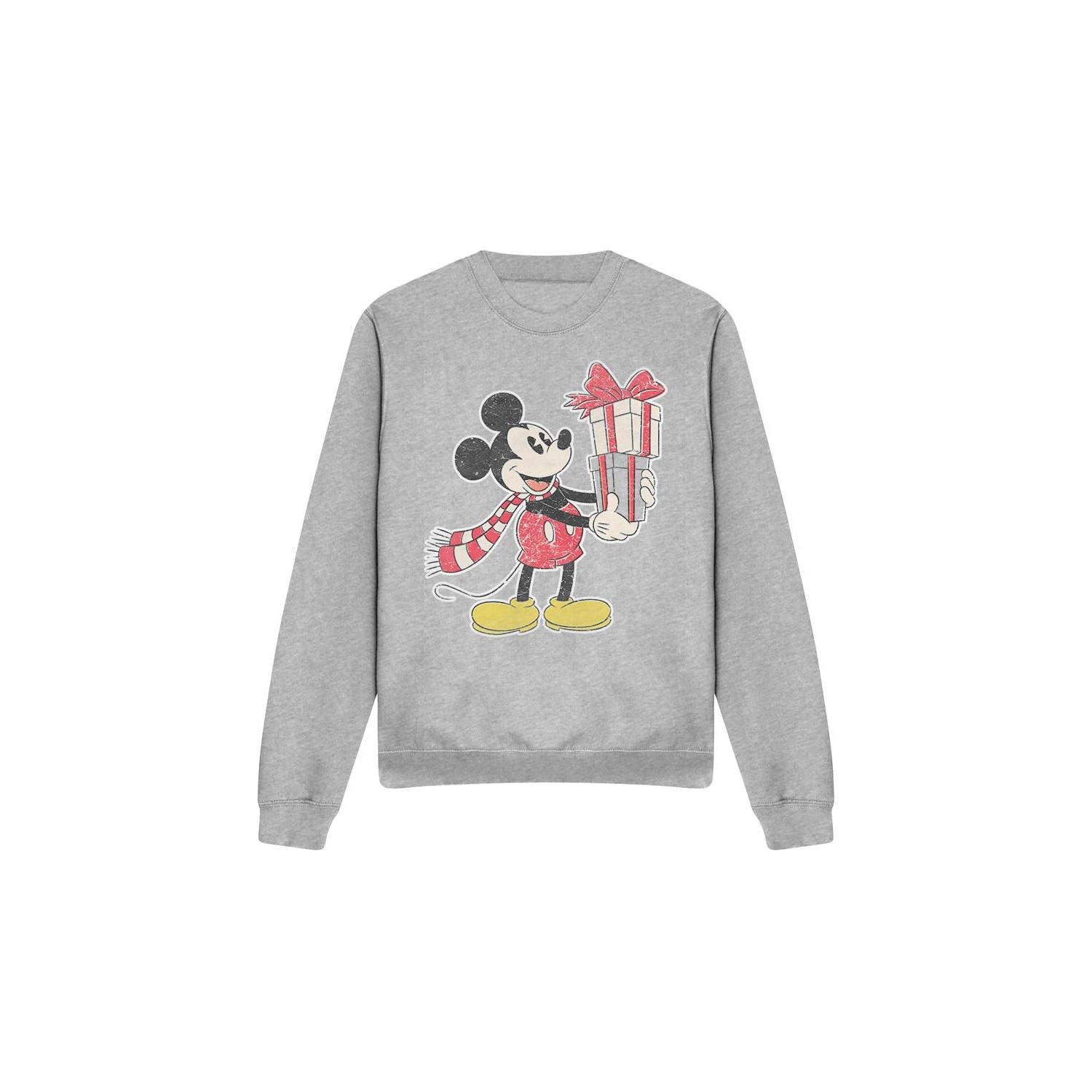 Questa felpa presenta un design festivo di Topolino, perfetto per le festività natalizie. Il classico girocollo e le maniche lunghe offrono una vestibilità regolare e confortevole, rendendola una scelta ideale per l'abbigliamento casual.