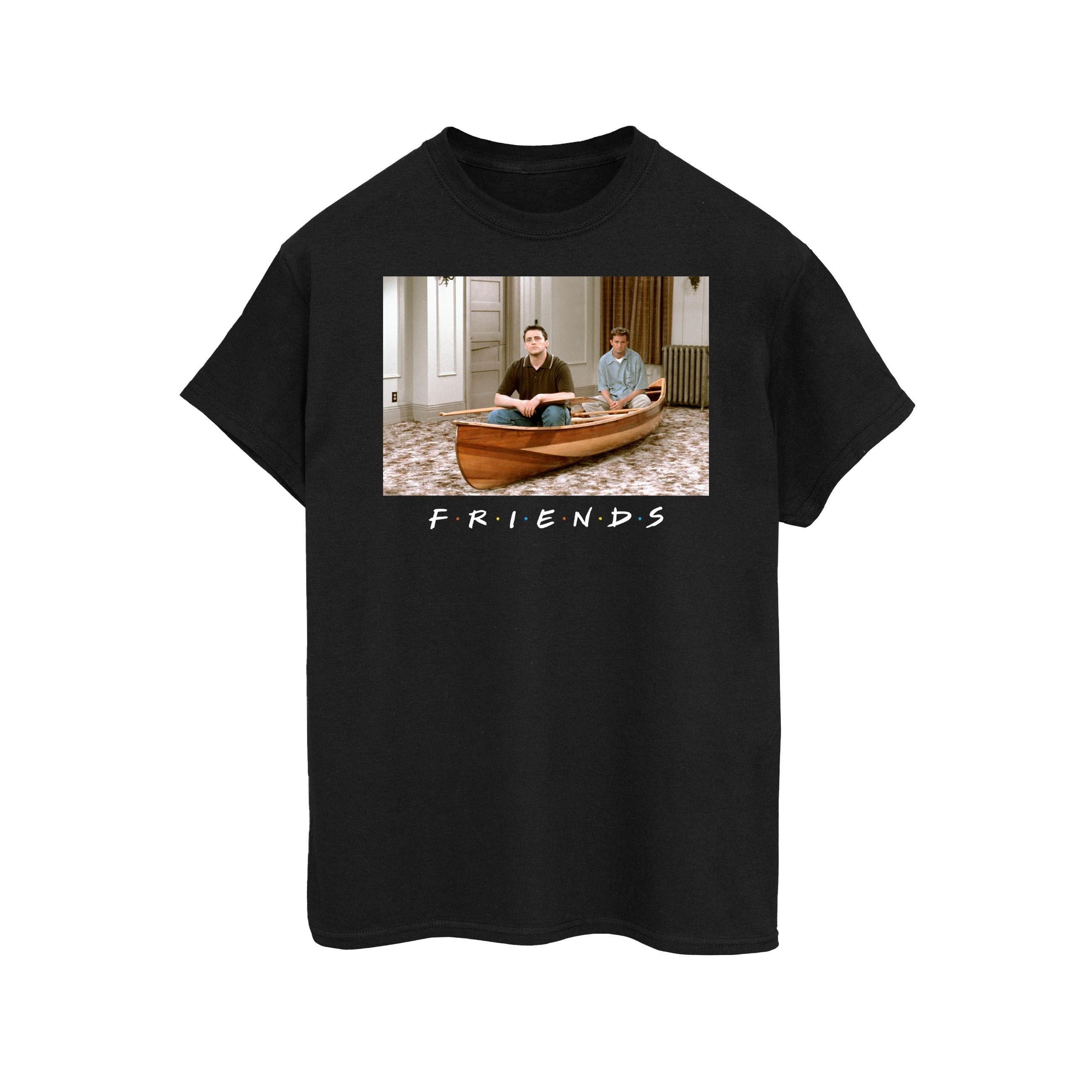 Questa T-shirt presenta un classico girocollo e maniche corte, offrendo una vestibilità comoda e versatile. La parte anteriore della maglietta mostra una stampa grafica di Joey e Chandler in canoa, accompagnata dall'iconico logo "F.R.I.E.N.D.S".