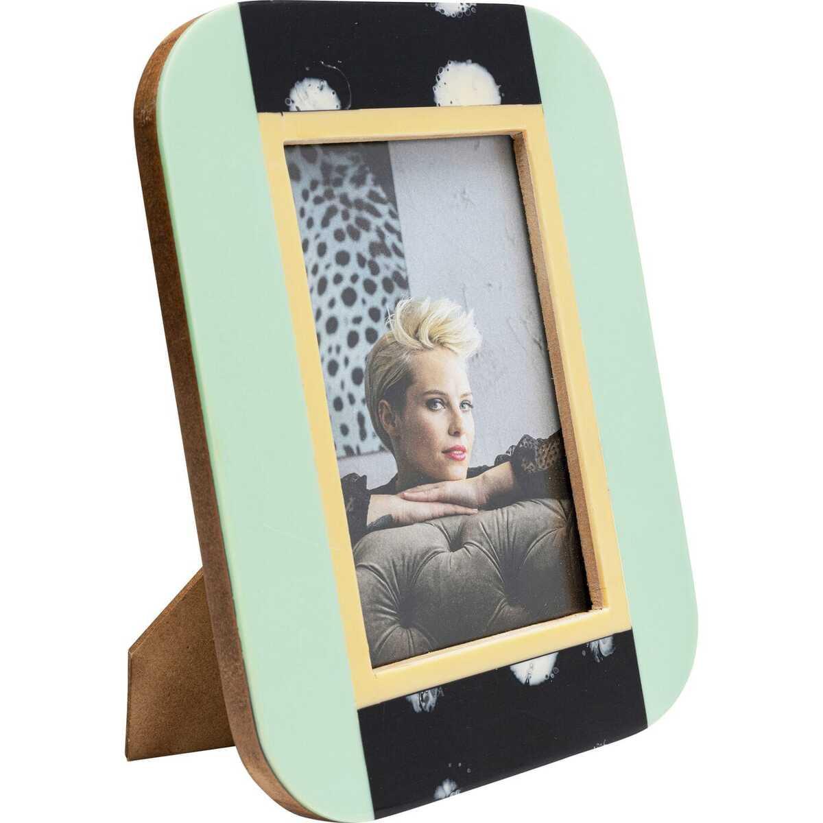 Cornice in vetro e legno, colore verde, 21,5 x 16,5 x 2 cm, fronte: vetro trasparente, cornice: pannello di fibra a media densità rivestito in poliresina, utilizzabile in verticale e in orizzontale, realizzata a mano, ogni pezzo è unico, dimensioni dell'immagine 10x15cm