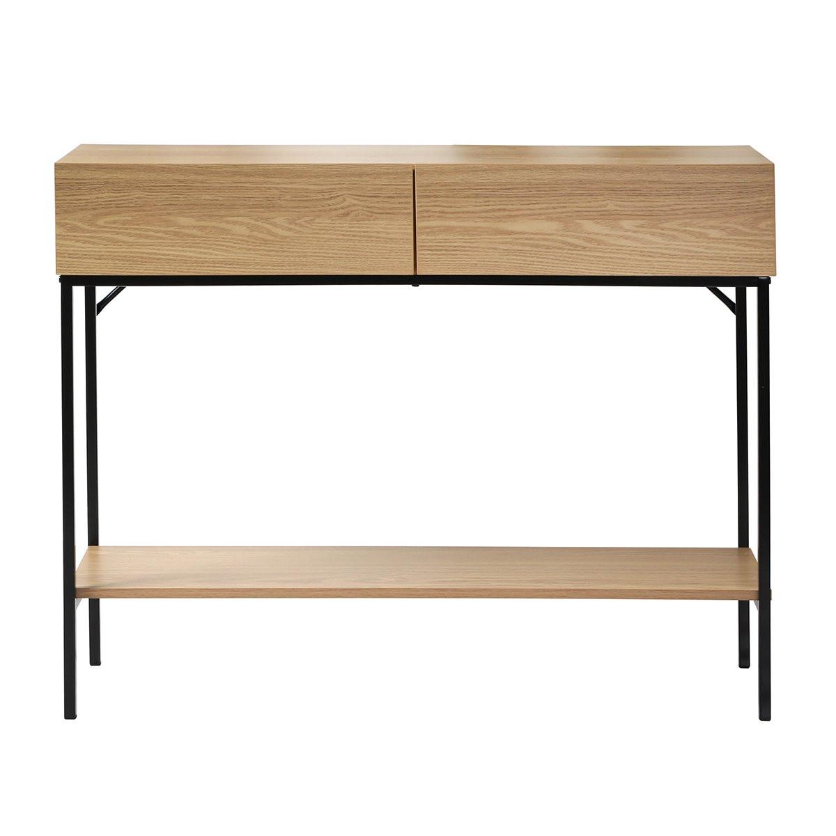 Caratteristiche del prodotto : Scopri la nostra Console con 2 cassetti e 1 ripiano, che ti fornirà preziosi spazi di archiviazione nel tuo ingresso, corridoio o salotto. Il suo stile industriale con la combinazione di materiali (decorazione in legno e metallo) si abbinerà perfettamente con tutti gli stili. Questo mobile non ha maniglie ma una presa integrata. Archiviazione integrata nel mobile: 2 ampi cassetti e 1 ripiano sotto. Realizzato in pannelli di particelle con finitura in carta decorativa in legno. Struttura in tubi di metallo nero. Dimensioni del prodotto : Lunghezza 100 cm x Profondità 35 cm x Altezza 81 cm - Peso netto: 19 kg. Dimensioni del pacco : Lunghezza 106.5 cm x Profondità 41 cm x Altezza 14 cm - Peso lordo: 20 kg.