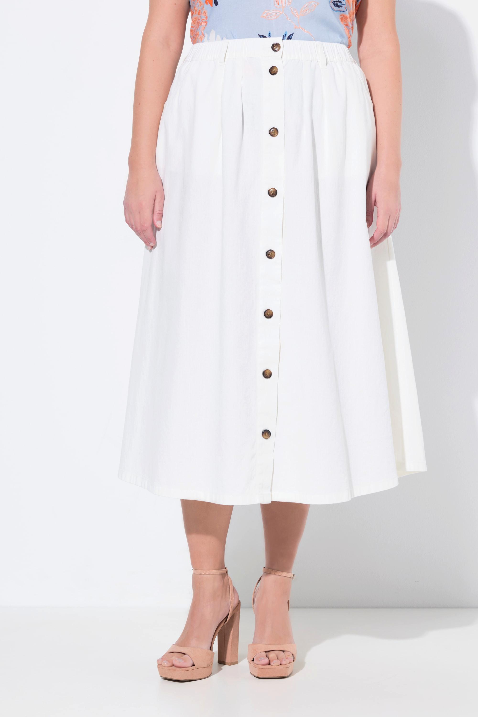 Ulla Popken Gonna di Jeans Taglio Svasato Bottoni Decorativi Cintura Elastica