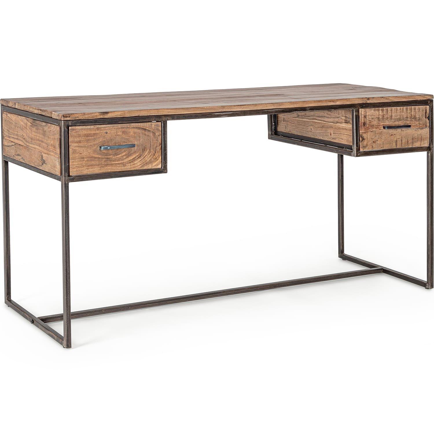 Scrivania Elmer 2 cassetti, struttura in legno di acacia e acciaio con verniciatura a polvere epossidica. Finitura acrilica protettiva.