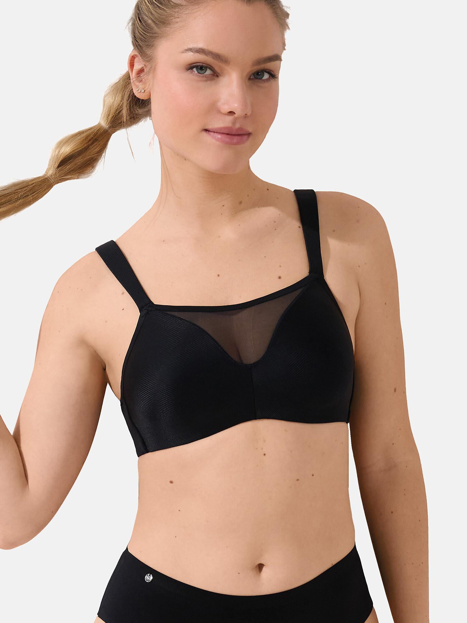 Reggiseno preformato con ferretto della collezione Lifestyle di Lisca, adatto alle taglie forti, con coppe imbottite funzionali e senza ferretto. La scollatura è alta con un inserto in tulle che avvolge il décolleté e ne migliora la funzionalità durante le varie attività. Come tutte le altre rifiniture, la scollatura è rifinita con un sottile piping incollato. Le spalline più larghe sono foderate in schiuma sul davanti e regolabili senza soluzione di continuità sul retro. La schiena è ampia, con una combinazione di tulle e tessuto bifoderato.