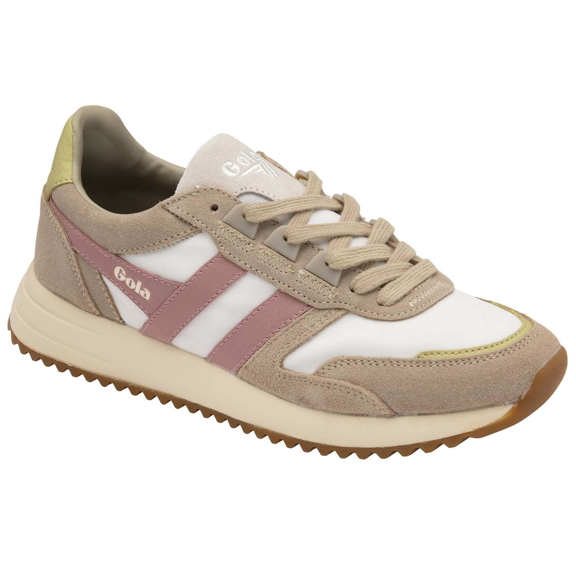 Questo jogger heritage è una versione perfettamente rifinita di un classico di sportswear. La Gola Chicago da donna è caratterizzata da una spessa intersuola in phylon e da una sorprendente combinazione di colori sulla tomaia: bianco, rose perla, verde patina e grigio. Chicago ha molto di cui entusiasmarsi, è una sneaker stile anni '80 che ha tutto, con un'estetica sportiva che ha un impatto e un senso.