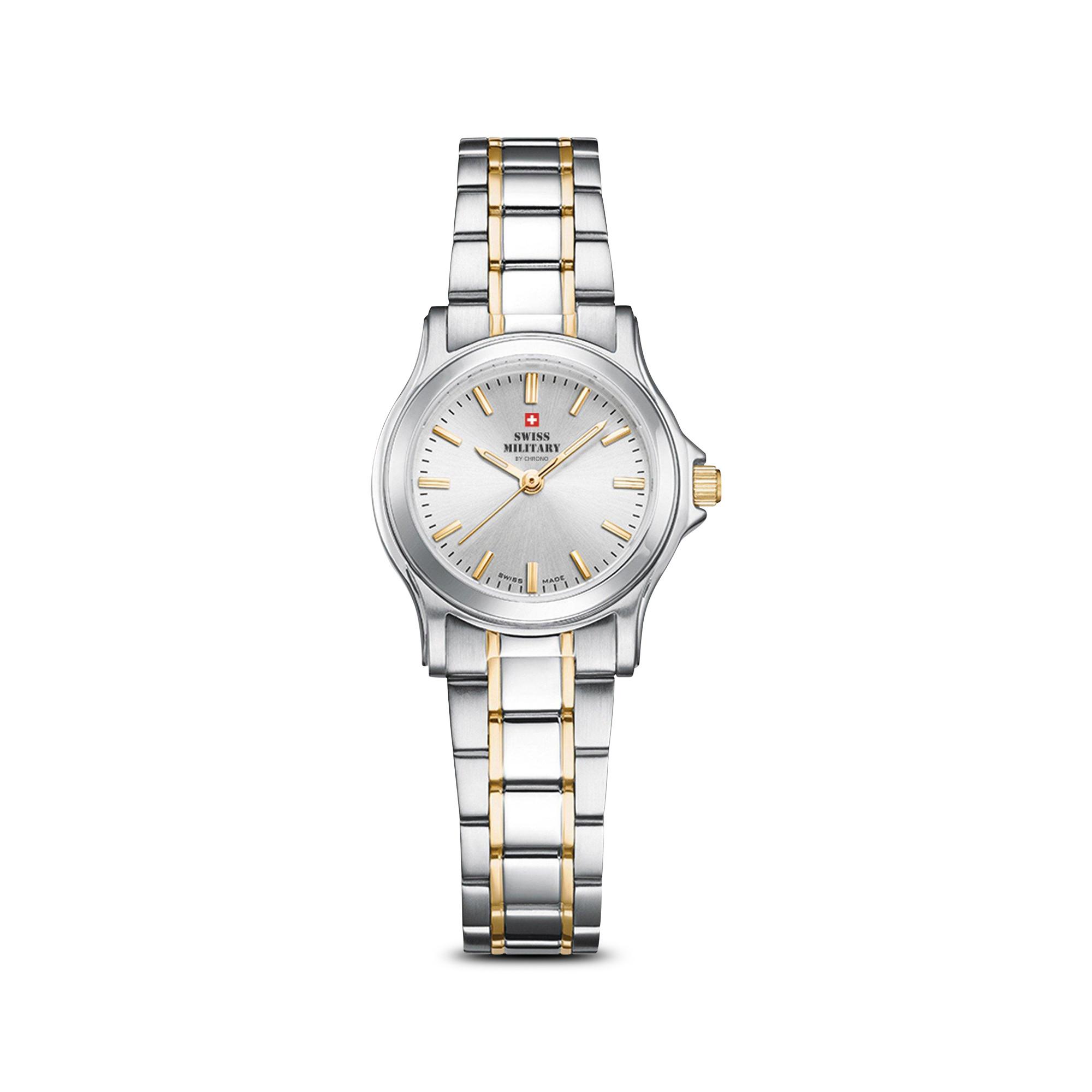 Godetevi la vista del vostro nuovo orologio firmato Swiss Military. L'elegante orologio analogico propone un delizioso design e con un raffinato mix in argento e oro.