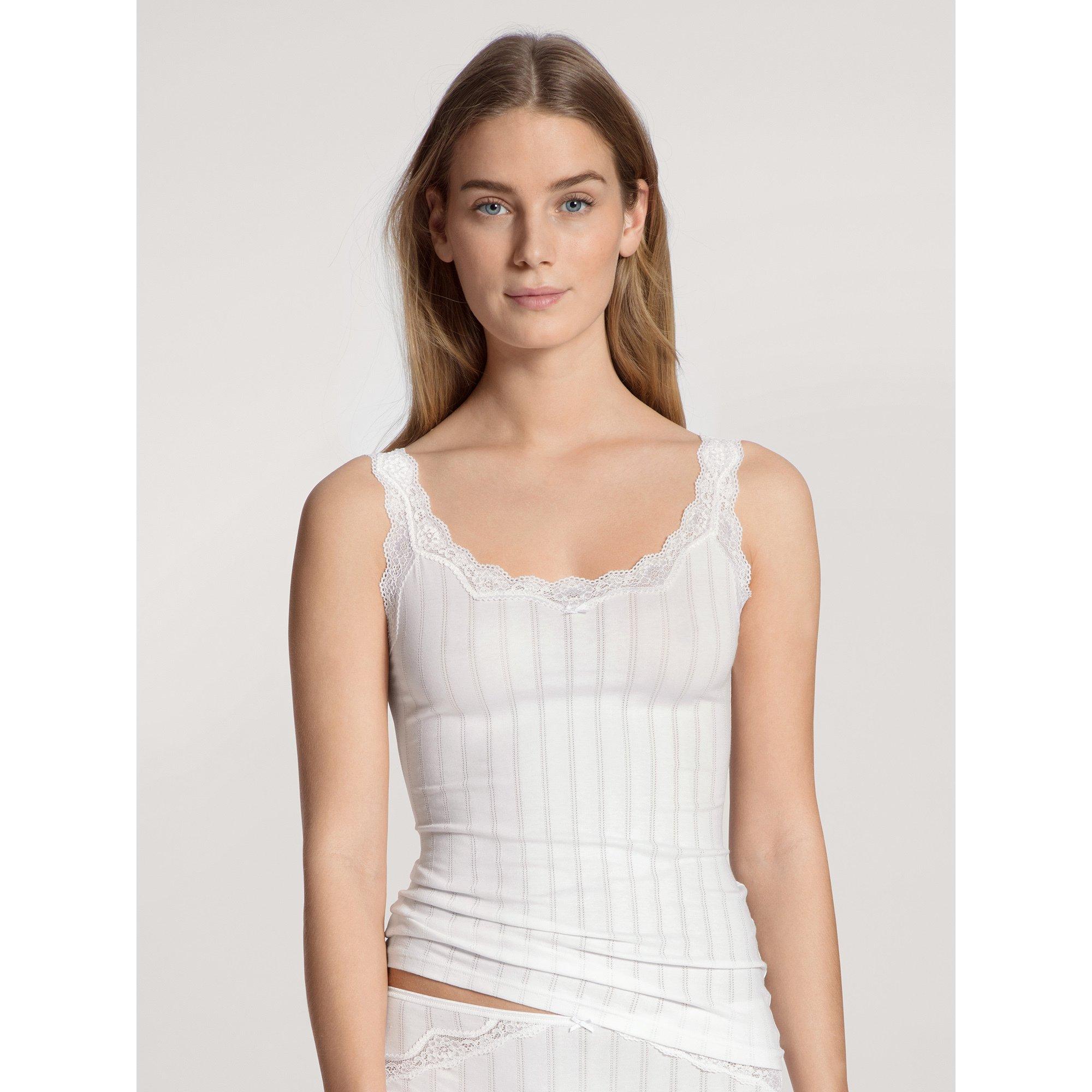 Questa semplice canotta convince per il tessuto morbido e la delicata finitura in pizzo lungo la scollatura, aggiungendo un tocco di eleganza a una silhouette classica. La texture a costine offre una vestibilità regolare comoda e lusinghiera, rendendola un'aggiunta versatile a qualsiasi guardaroba.