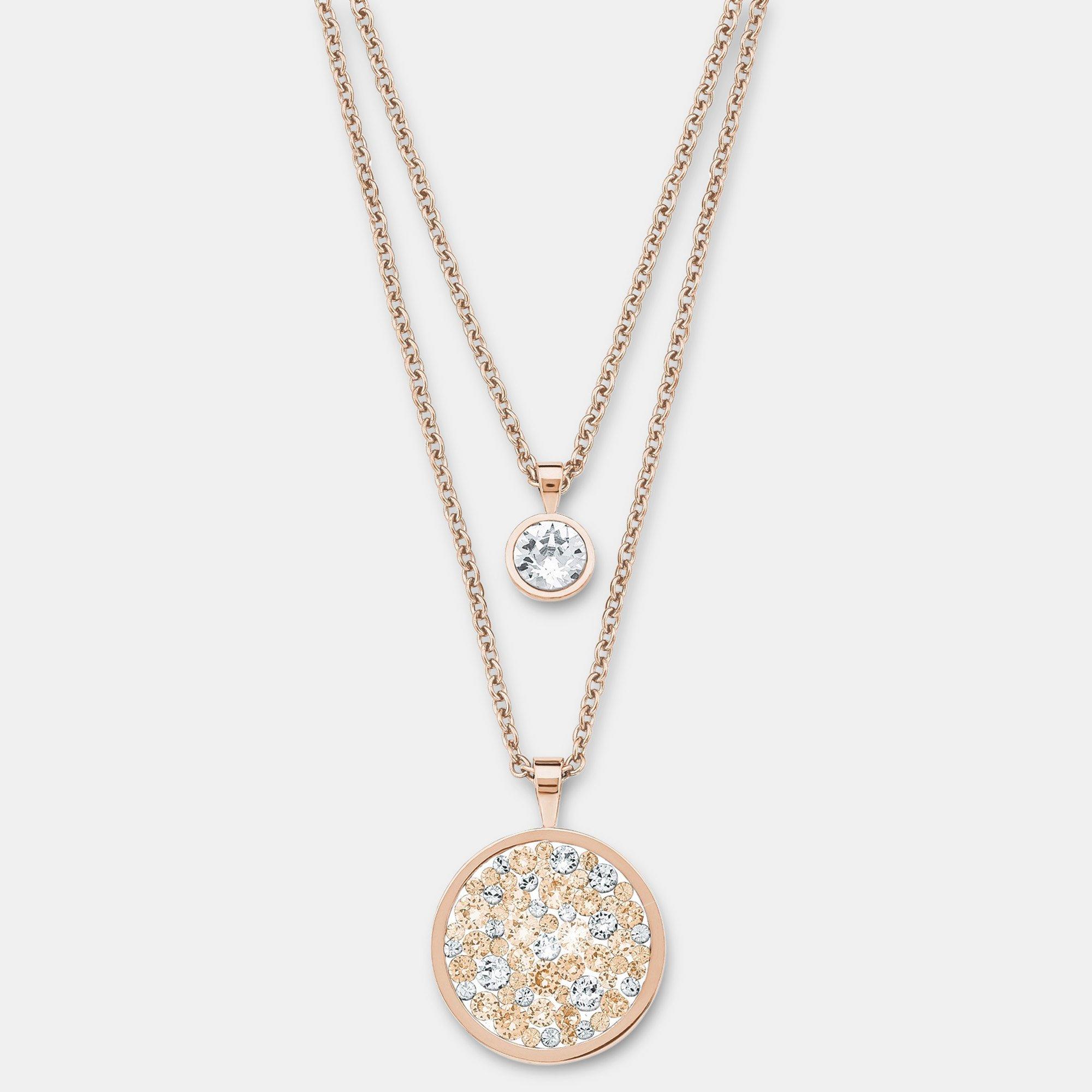 Questa collana regolabile in lunghezza (42 + 3 cm) firmata s. Oliver convince con un ciondolo rotondo in un moderno look oro rosa. Il pavé di cristalli grigio scuro di Swarovski® attira l'attenzione. Un rivestimento di alta qualità in placcatura ionica Rose fa brillare il gioiello in oro rosa e lo protegge dai graffi.