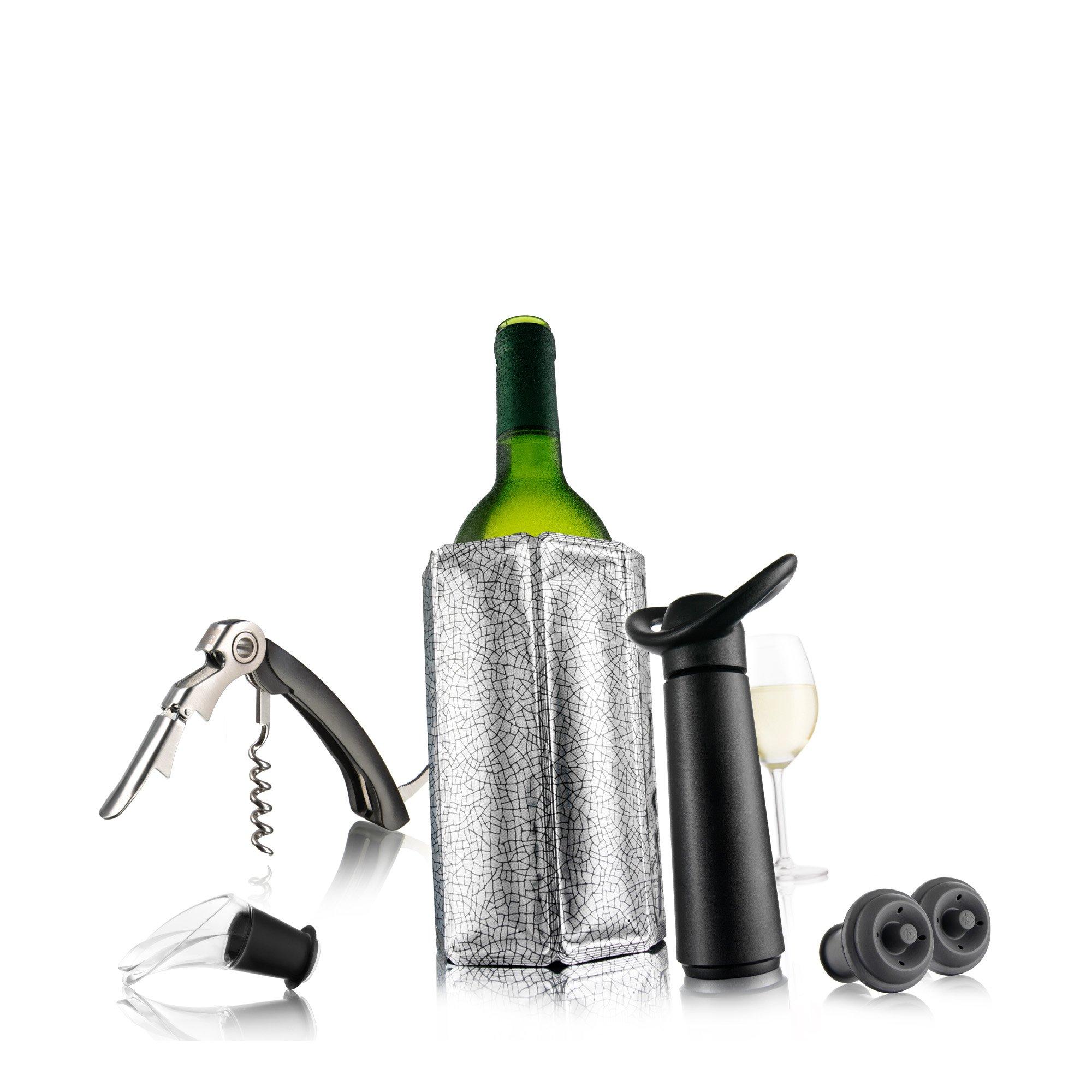 Questo set regalo da 6 pezzi da Vacuvin comprende una borsa termica per il vino, un coltello da cameriere, un versatore di vino, una pompa per il vino sottovuoto e due tappi e un tappo per il vino sottovuoto.