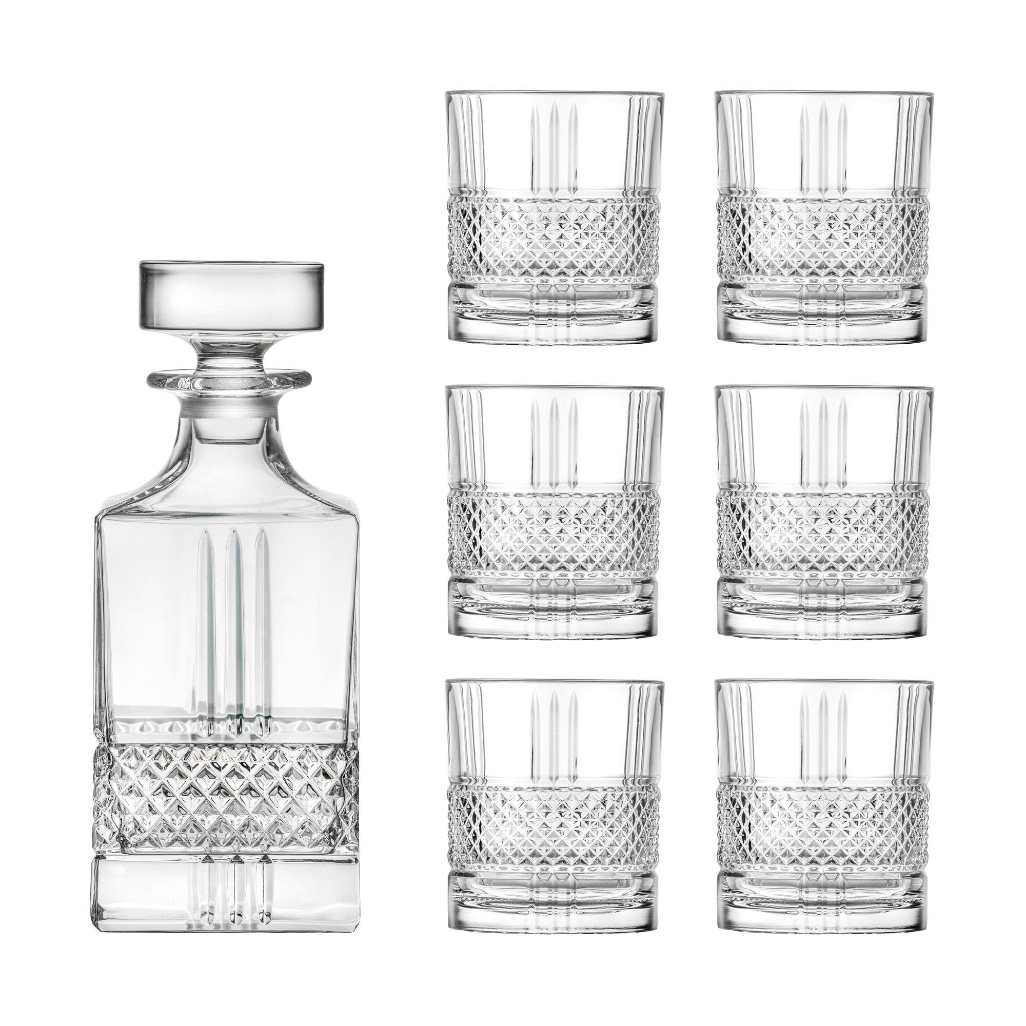 Servizio di 7 pezzi da whisky in cristallo di alta qualità. Il set è composto da un'elegante bottiglia da whisky e sei bicchieri coordinati.