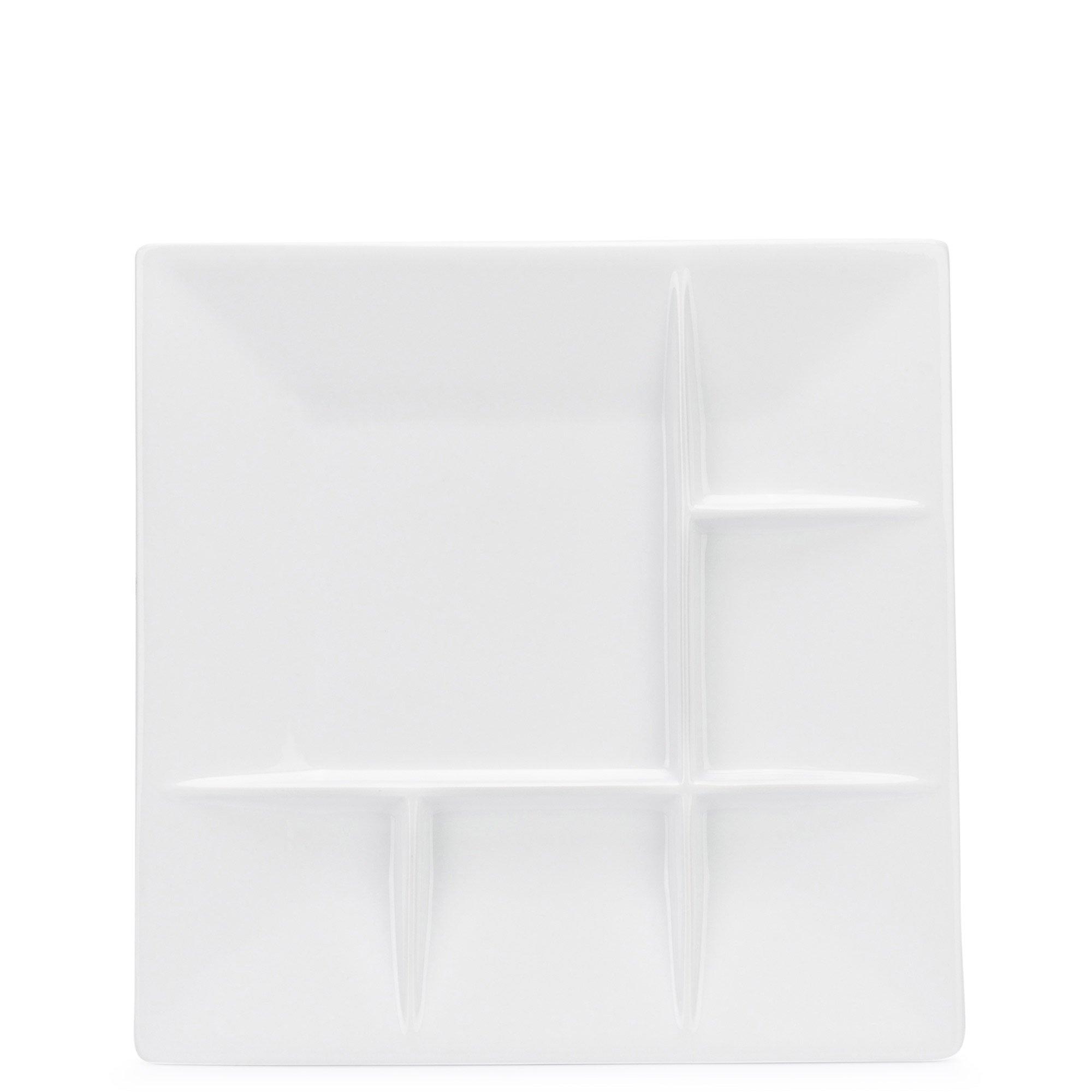 Questo semplice piatto per fonduta di carne dall'estetica versatile, sorprende con il nero intenso della mise en place. Grazie ai cinque scomparti separati, questo piatto mostra tutto il suo carattere funzionale.