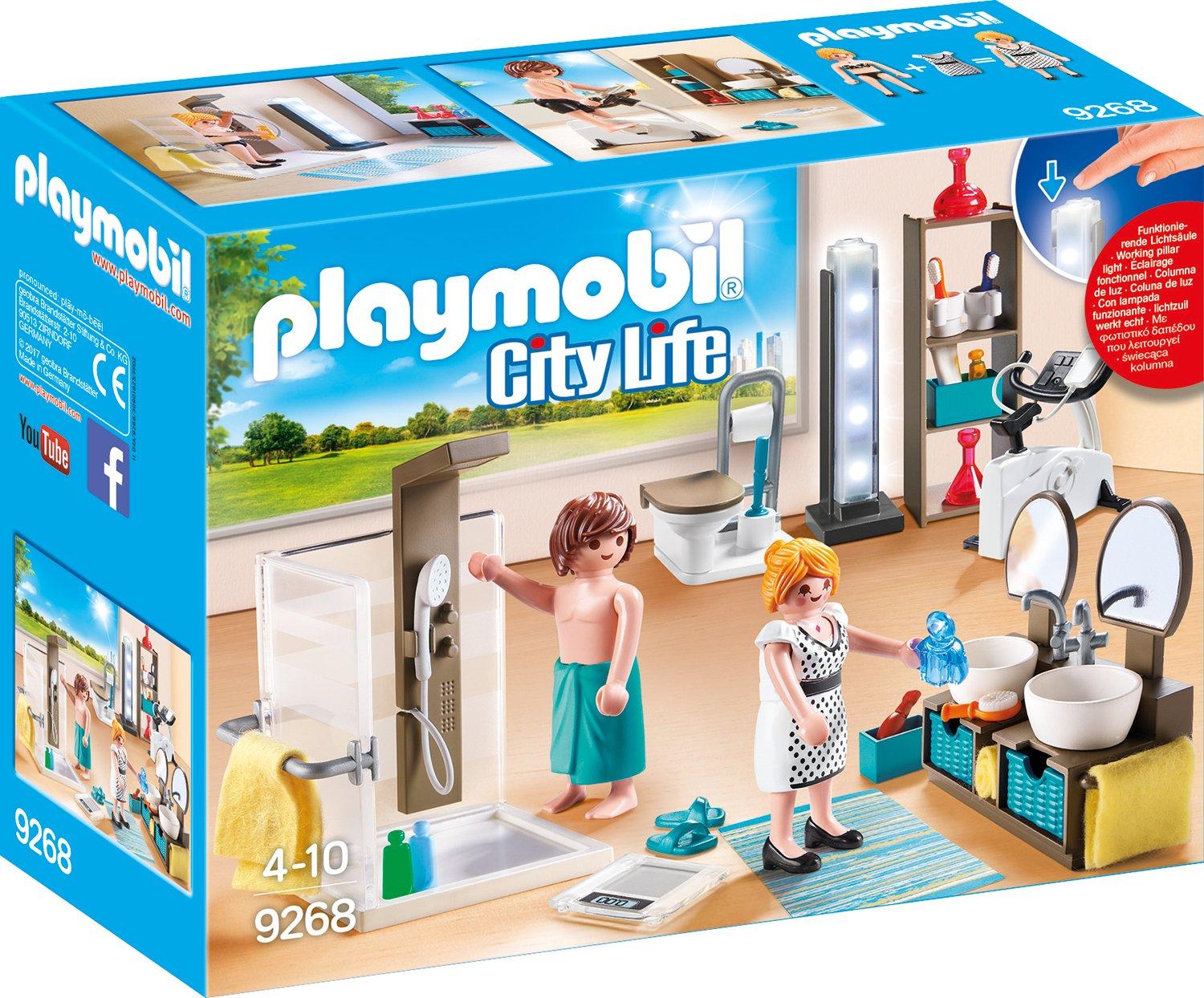 Fornito di doccia, WC, doppio lavello e cyclette per gli esercizi. La lampada funzionante crea un effetto di luce rilassante (richiede 1 batteria 1,5V)