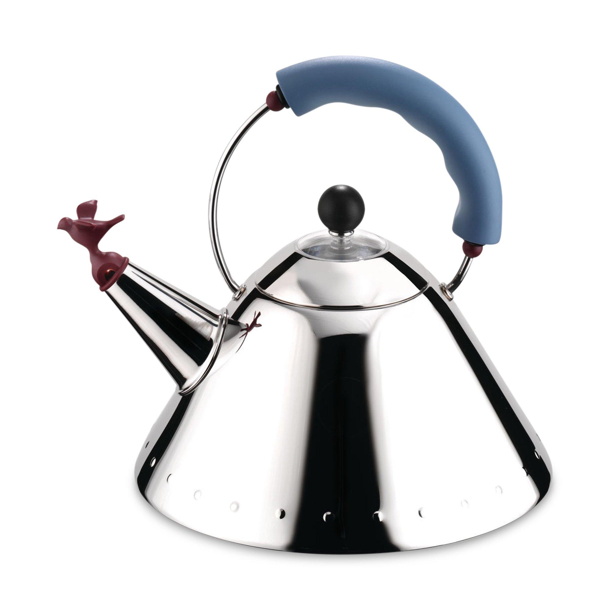 Ecco un bollitore divertente. Il modello iconico firmato Alessi piace per il linguaggio di ispirazione e pop e la praticità d'uso.