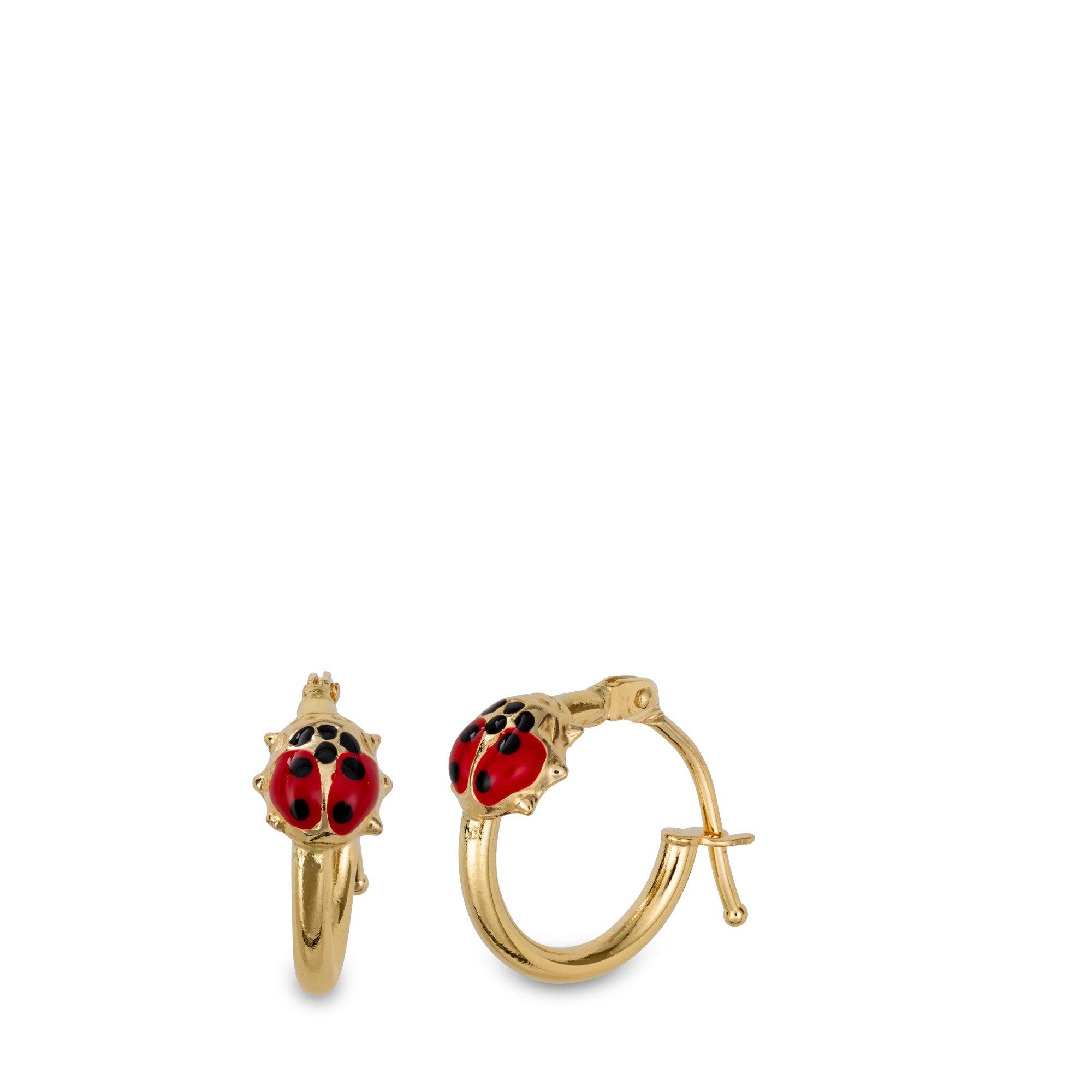 Chi non ricorda il primo piercing all'orecchio e i primi orecchini a perno? Gli orecchini a cerchio Caramel sono i primi orecchini a perno di un tipo molto particolare. Sono realizzati in oro 18 carati e adornati con coleotteri portafortuna dipinti in filigrana. Uno spettacolo indimenticabile.
