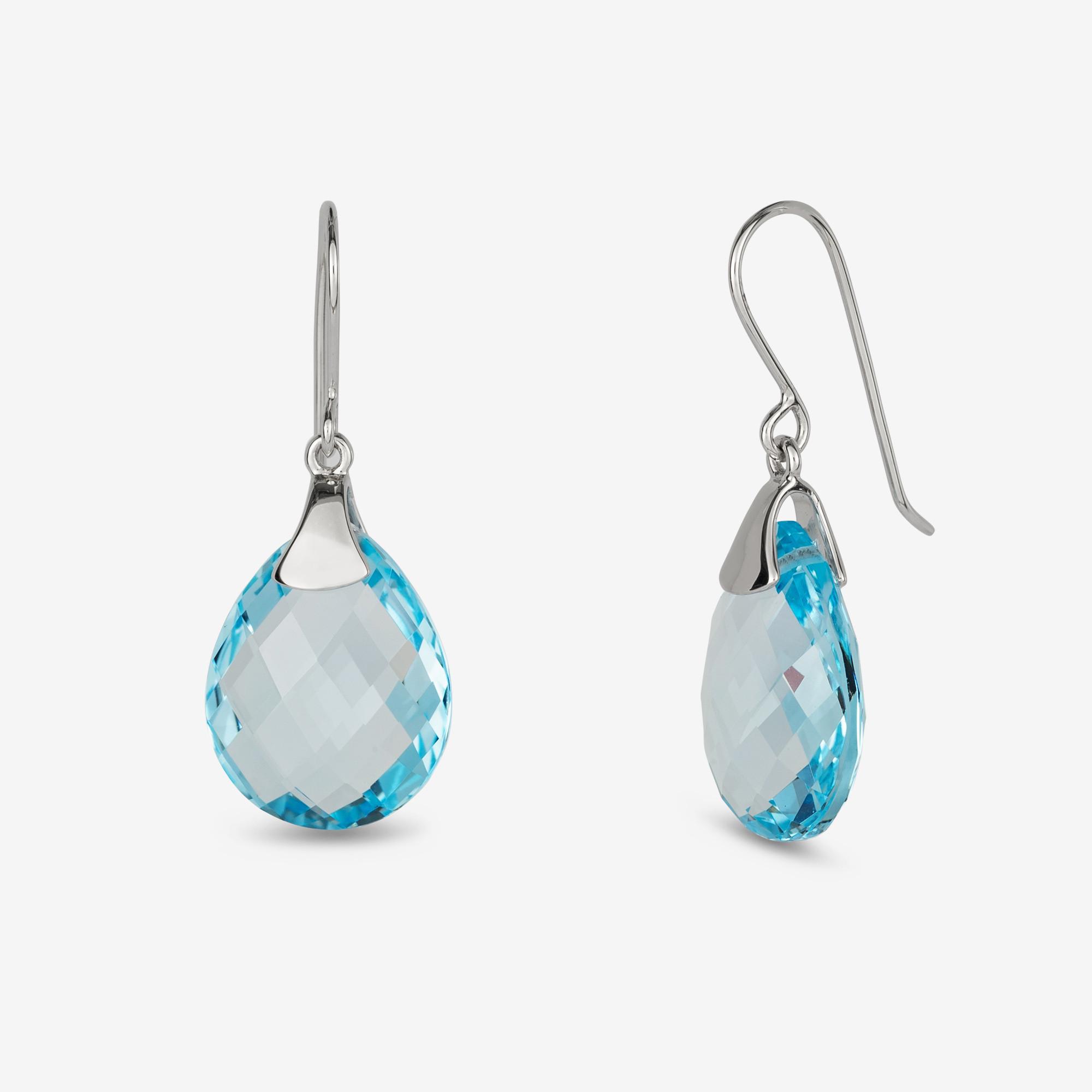 Un topazio a goccia è il fulcro di questi orecchini del marchio Maddison. La gemma raffinata è accompagnata da una montatura in oro bianco da 18 carati, che si fonde in un gancio ricurvo. Un autentico richiamo visivo per un look perfetto.