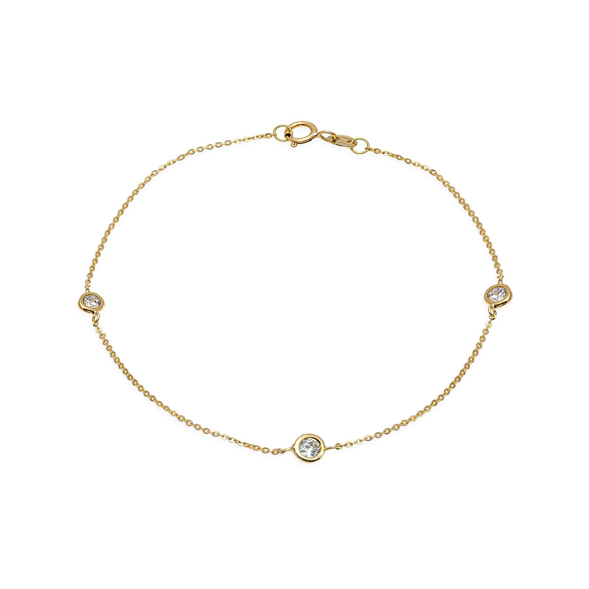 Il bracciale firmato L'Atelier Gold è un gioiello in filigrana in oro giallo 18 carati, decorato con tre zirconi e una chiusura ad anello a molla. Questo elegante bracciale è perfetto per ogni occasione e dona al look un tocco di raffinatezza.