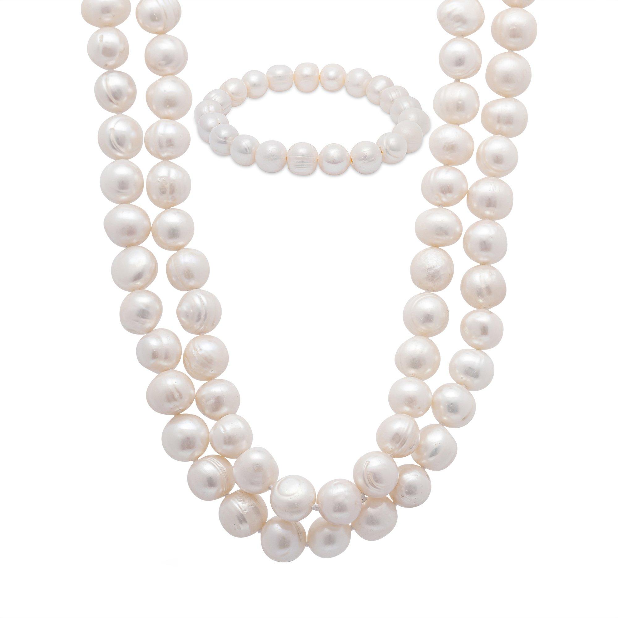 Elegante parure di bracciale e collier firmata Puro, realizzata con perle d'acqua dolce, che rendono ogni gioiello un tesoro unico grazie alla forma individuale.