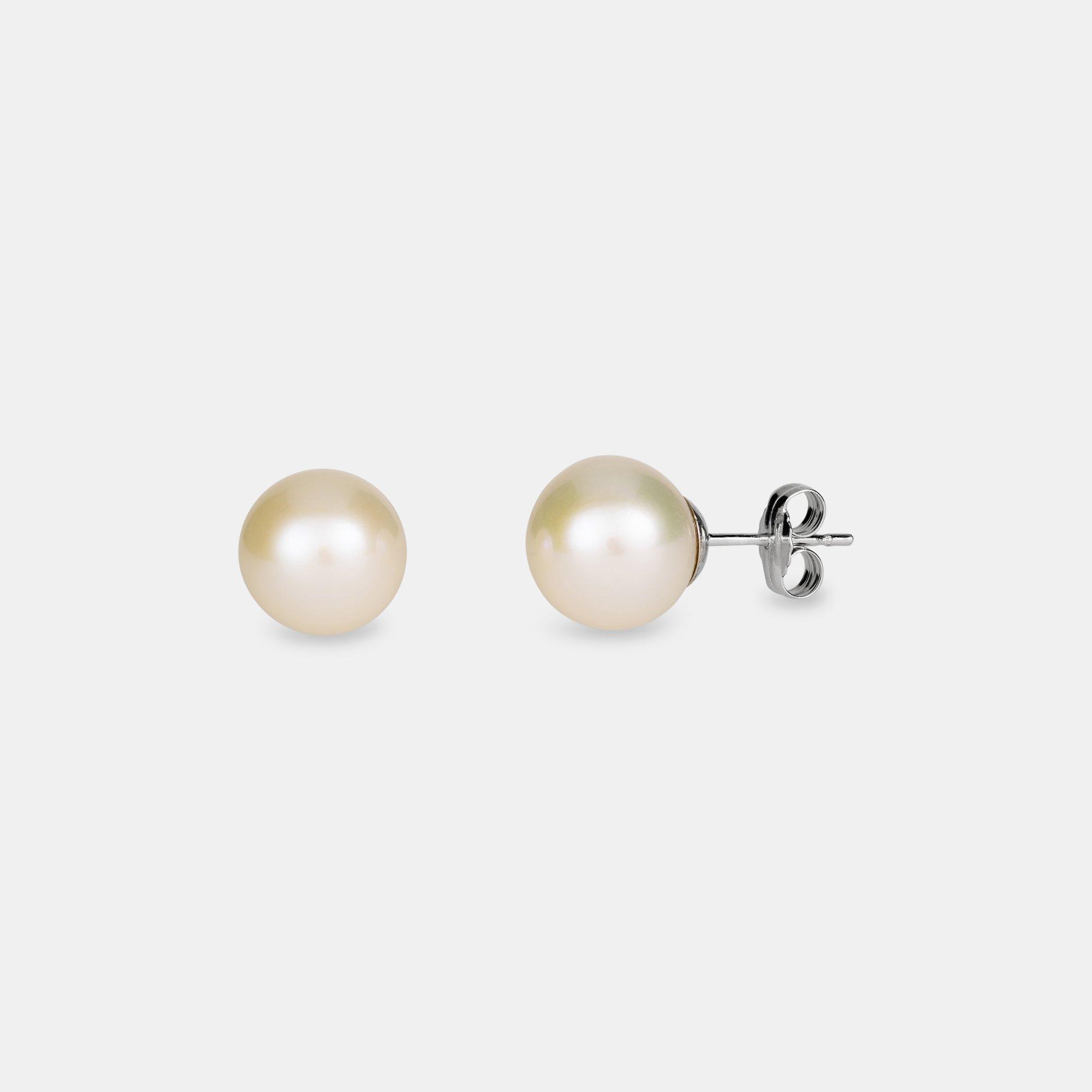 Questi eleganti orecchini a borchia in oro bianco a 18 carati del marchio Puro sfoggiano perle d'acqua dolce di alta qualità. Creano un effetto scintillante e donano ad ogni look un carattere classico.