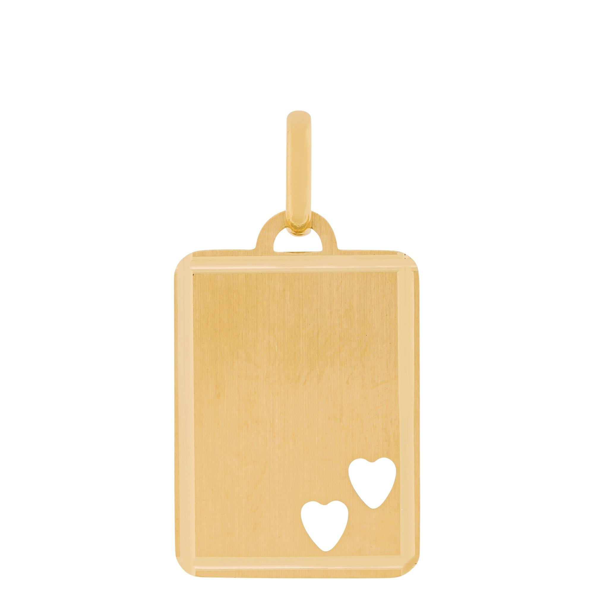 Questo ciondolo del marchio L'Atelier 18 Carat Gold prende la forma di una piastra incisa sottilissima personalizzabile. Due cuori perforati creano un magnifico ciondolo in finissimo oro giallo.