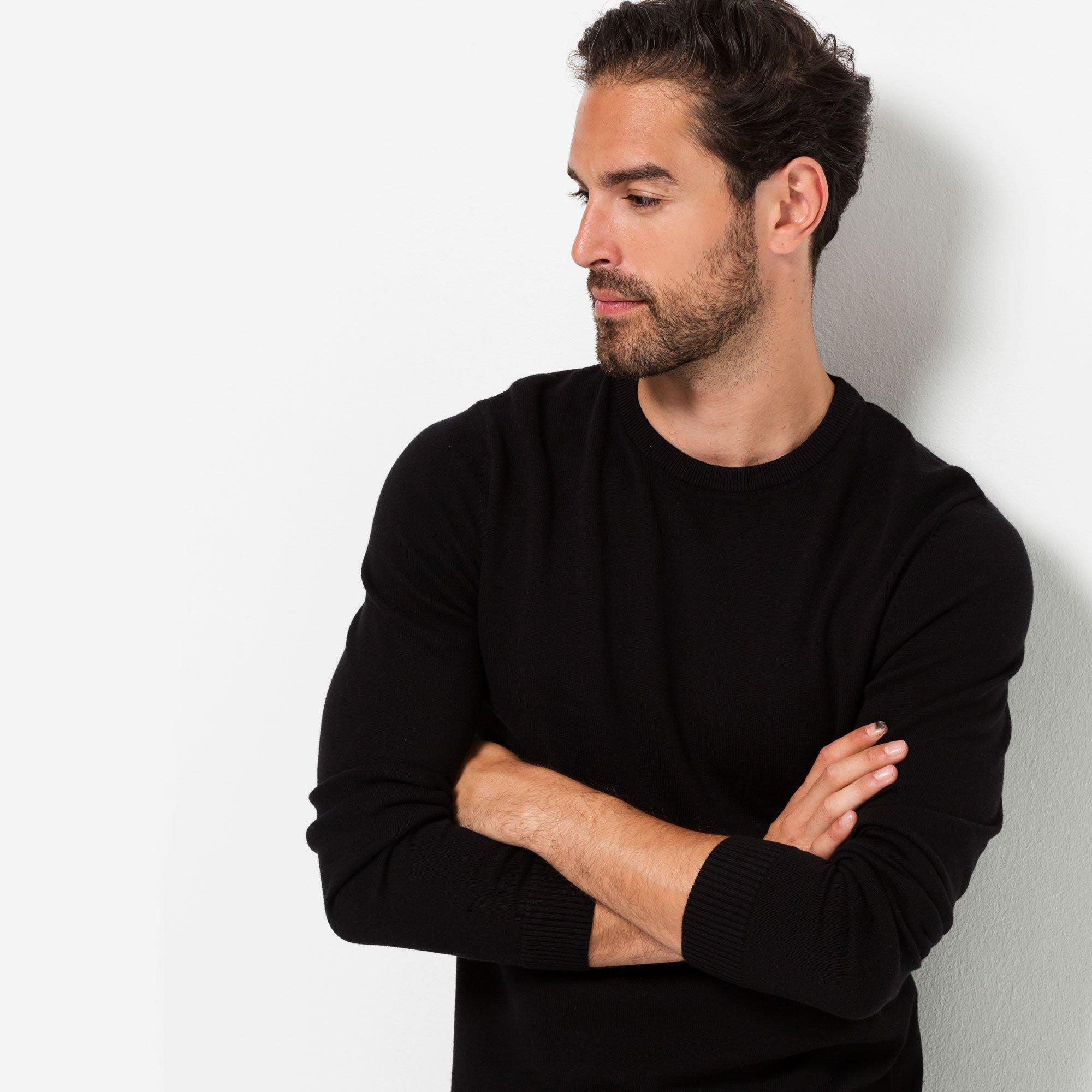 Questo maglione offre una vestibilità regolare confortevole, rendendolo un'aggiunta versatile a qualsiasi guardaroba. Il suo design classico assicura che possa essere abbinato per varie occasioni. Il maglione in maglia presenta spalle leggermente scese e un orlo e un colletto a costine.