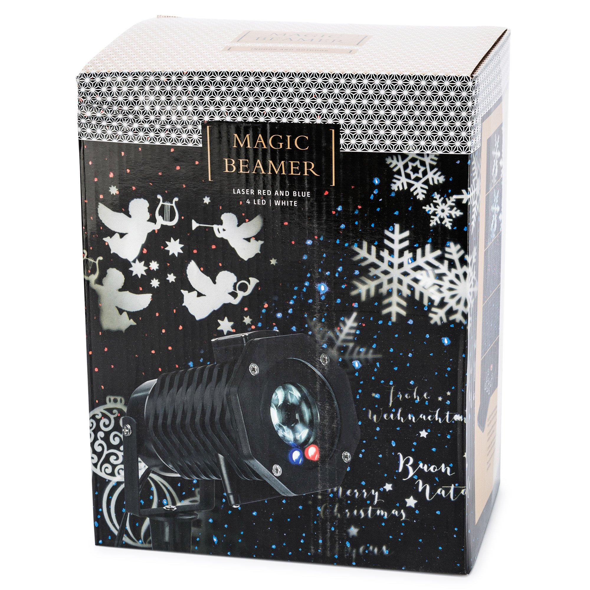 Trasformate lo spazio interno o esterno in un colorato clima natalizio: il proiettore a LED conquista con otto diversi motivi che diffondono un'atmosfera di festa davvero magica.