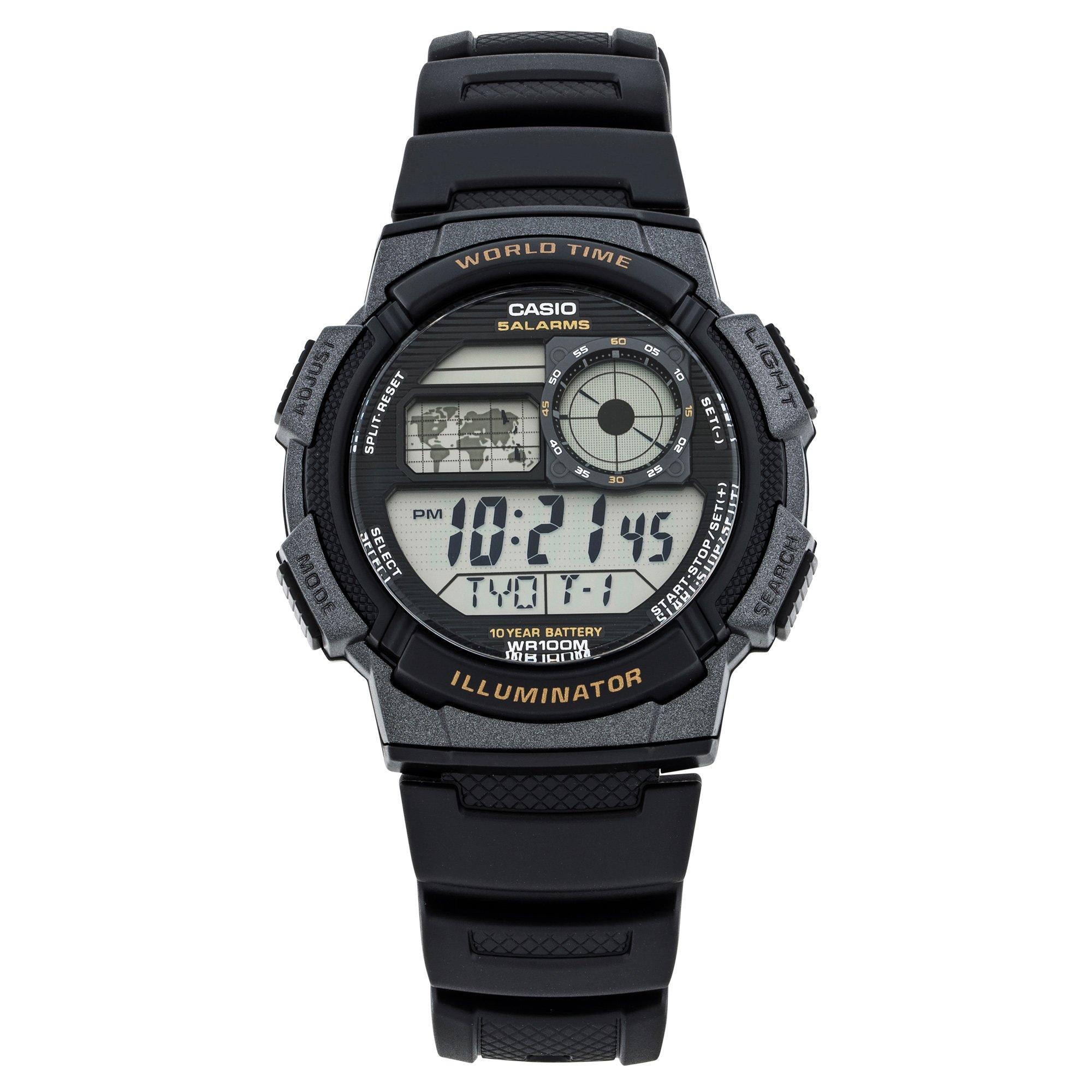 L'orologio multifunzionale AE-1000W-1AVEF del marchio Casio assicura che possiate leggere l'ora il giorno e la notte. Anche al buio, la luce a LED permette la visualizzazione del tempo. Il cronometro misura il tempo con una precisione di centesimi di secondo, mentre la funzione di fuso orario mondiale indica l'ora in 29 fusi orari diversi. L'allarme quotidiano ricorda gli eventi ricorrenti con un segnale acustico. Un orologio che soddisfa tutte le esigenze.