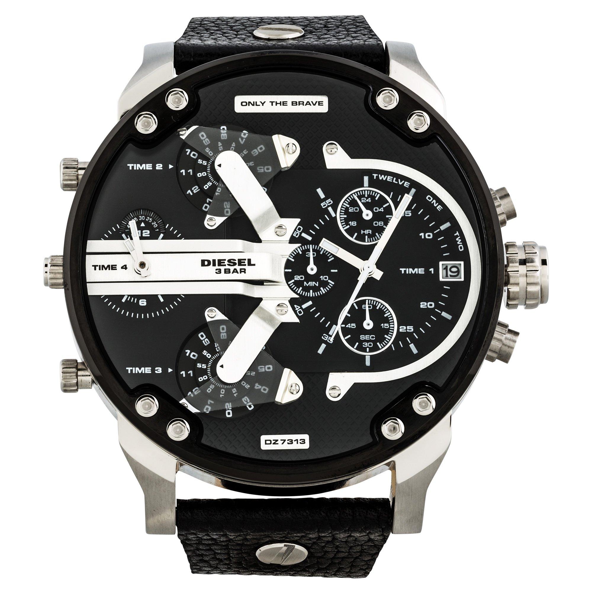 Questo orologio del marchio Diesel propone un enorme quadrante, che oltre ai tre totalizzatori classici sfoggia diverse lancette. Una piccola meraviglia della tecnologia da indossare al polso.