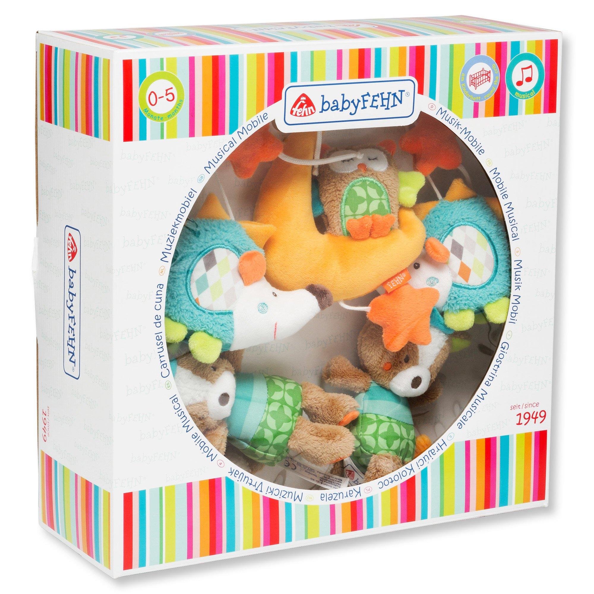 Questo carillon grazioso del marchio Fehn è dotato di soffici personaggi morbidi da afferrare, che girano lentamente in cerchio e che si possono rimuovere singolarmente per giocare. La melodia rilassante accompagna il bebè dolcemente mentre si addormenta.
