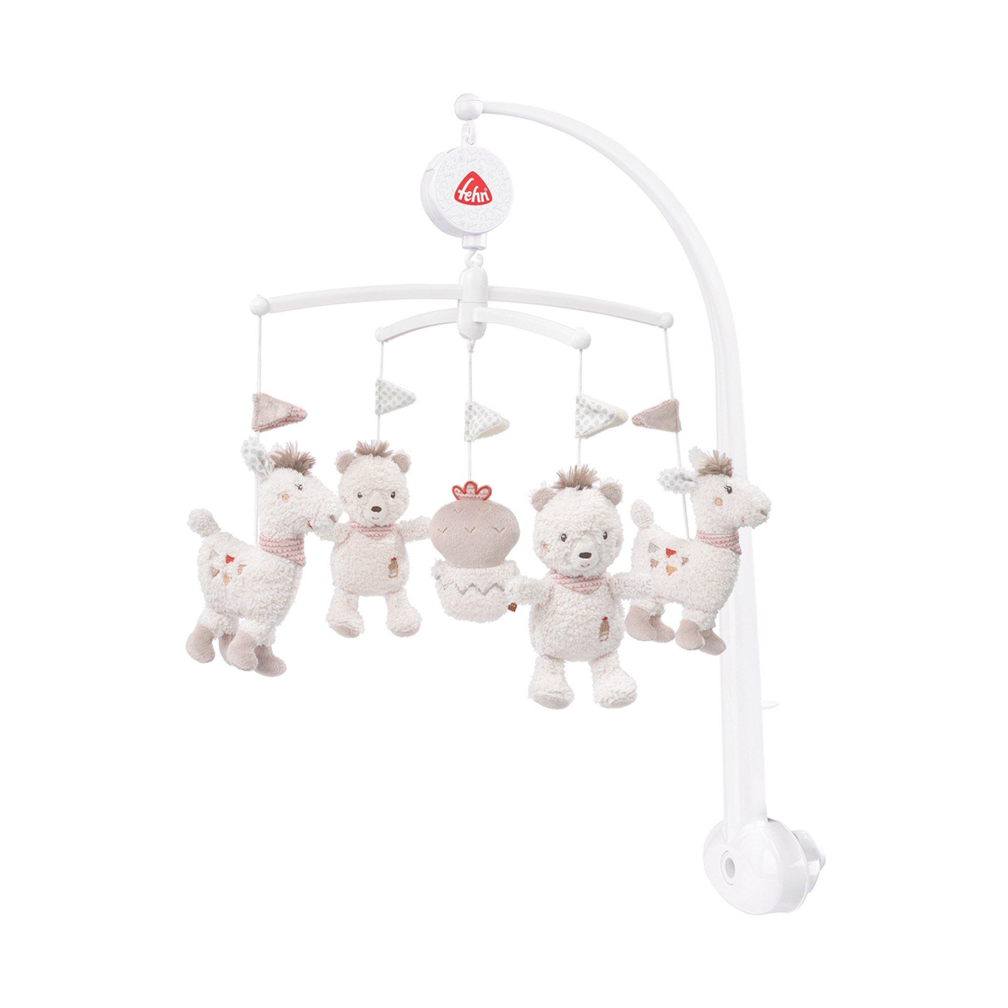 Il gioco PERU firmato Fehn propone 5 graziosi animaletti soffici dai colori tenui.